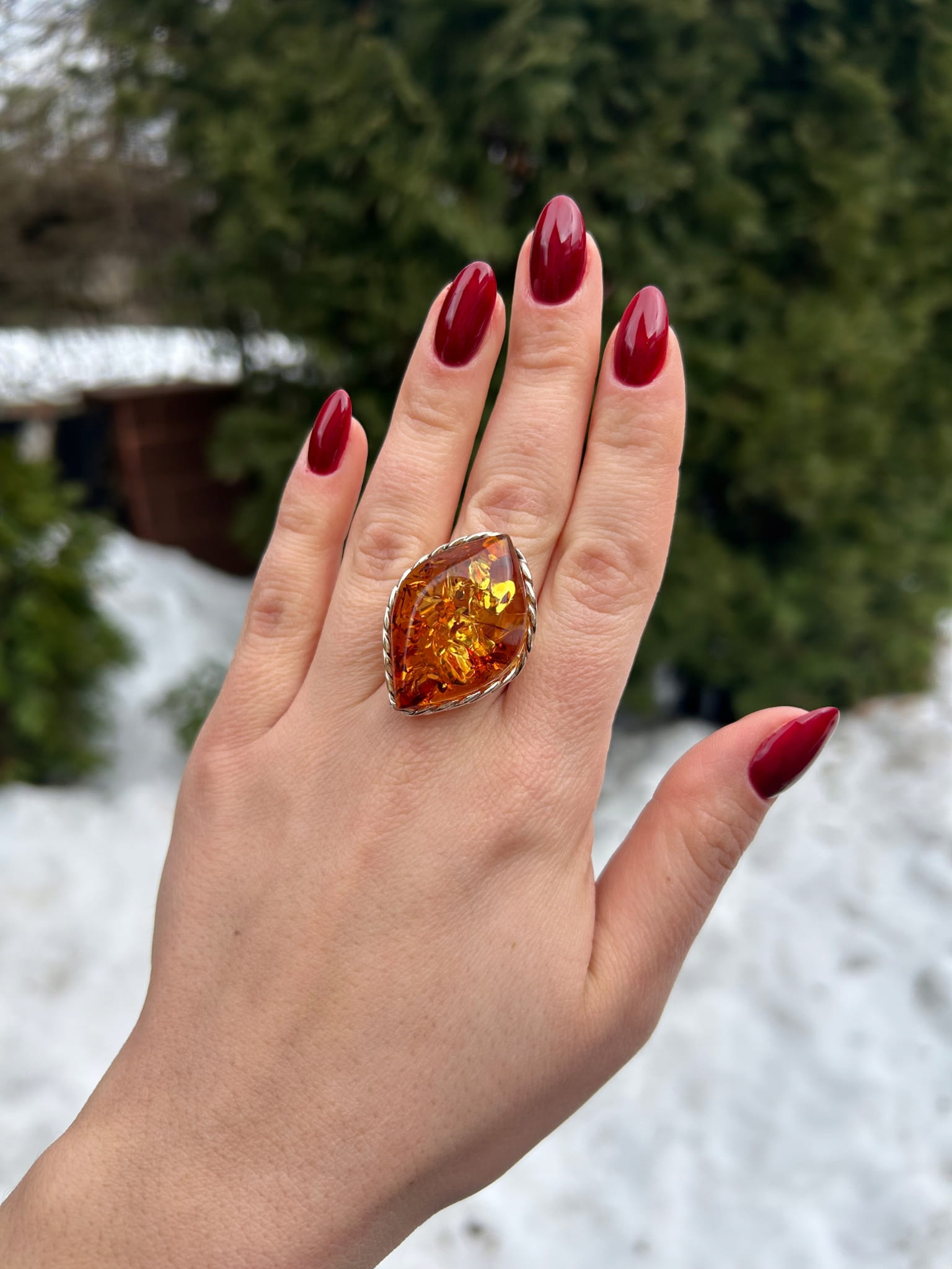 Pierścionek srebrny z naturalnym bursztynem – światło zamknięte w kamieniu