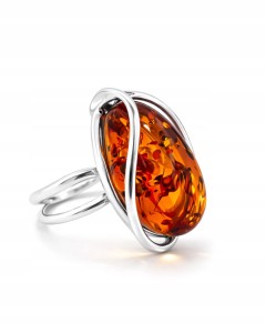 Pierścionek srebrny z bursztynem REGULOWANY