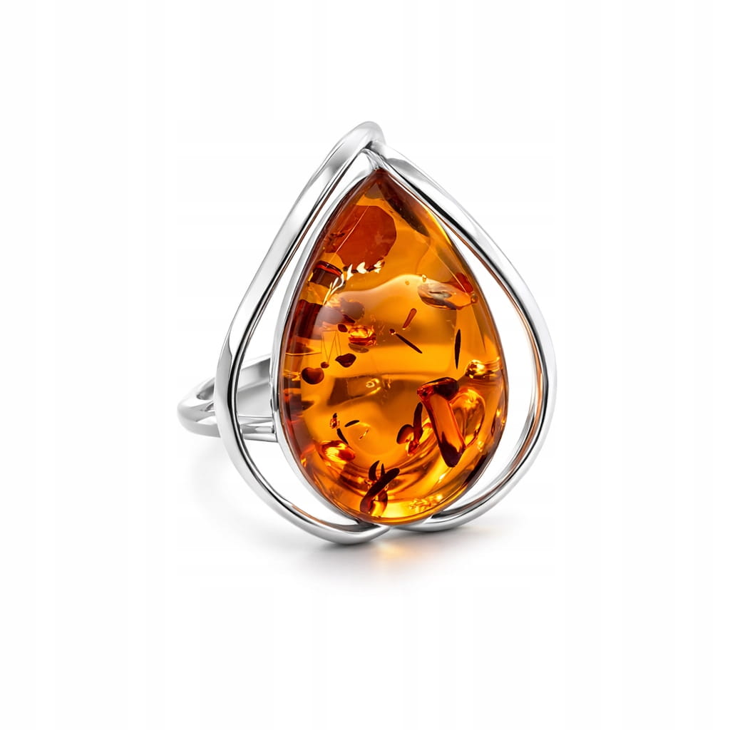 Pierścionek srebrny z naturalnym bursztynem – światło zamknięte w kamieniu