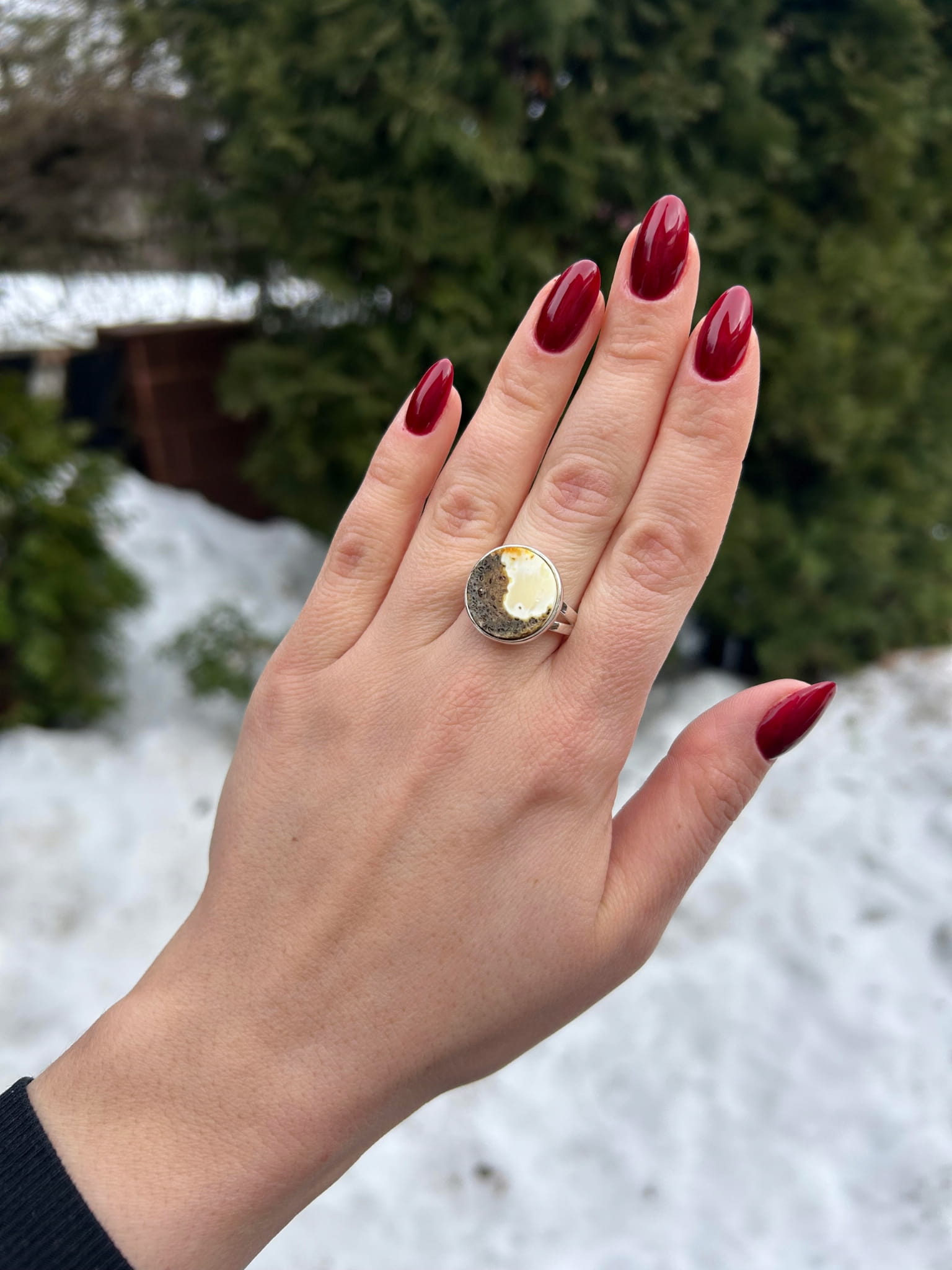 ✔️ Surowy, matowy bursztyn zachwyca swoją autentyczną strukturą i niepowtarzalnym rysunkiem natury, dzięki czemu każdy pierścionek jest jedyny w swoim rodzaju.