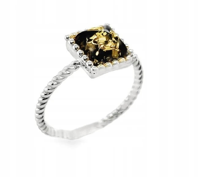 Pierścionek srebrny z bursztynem ROZMIAR 10