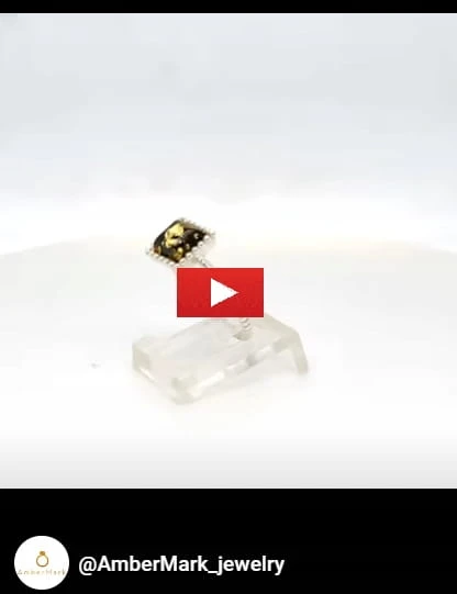 Głównym elementem pierścionka jest bursztyn bałtycki, który został starannie osadzony w srebrnej oprawie próby 925.