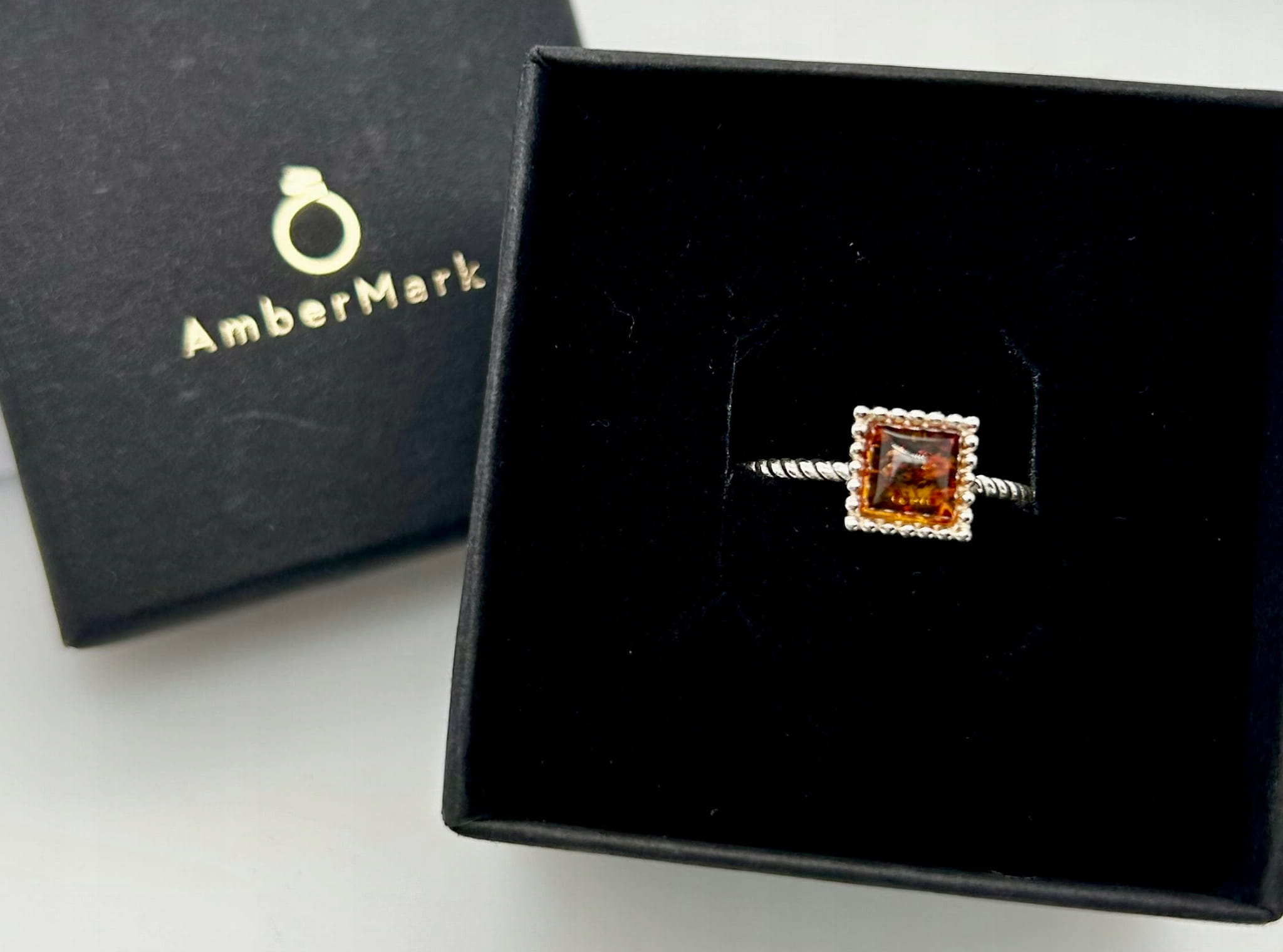 Pierścionek srebrny z bursztynem ROZMIAR 11