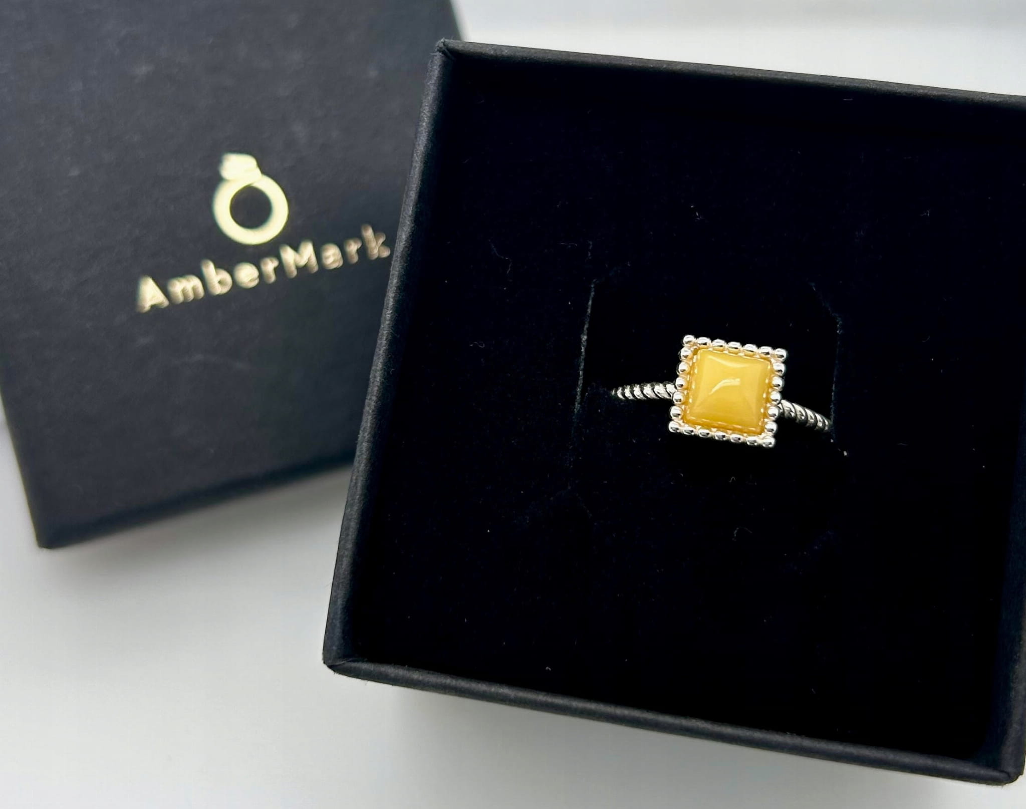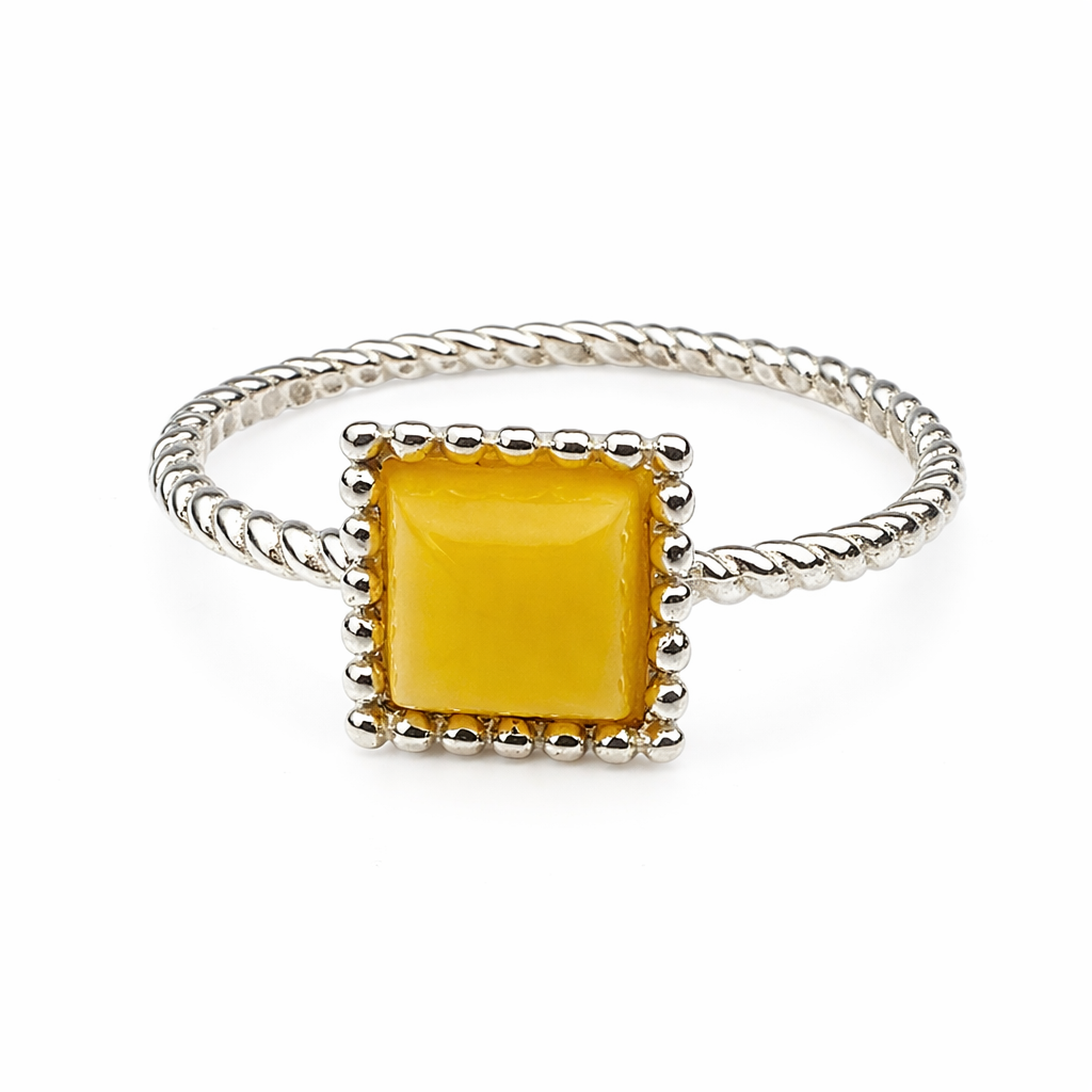 Odkryj magię bursztynu i srebra w naszych delikatnych pierścionkach.