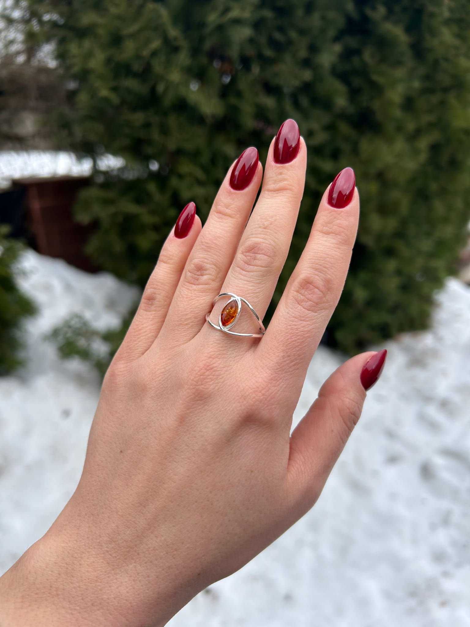 Pierścionek srebrny z bursztynem ROZMIAR 20