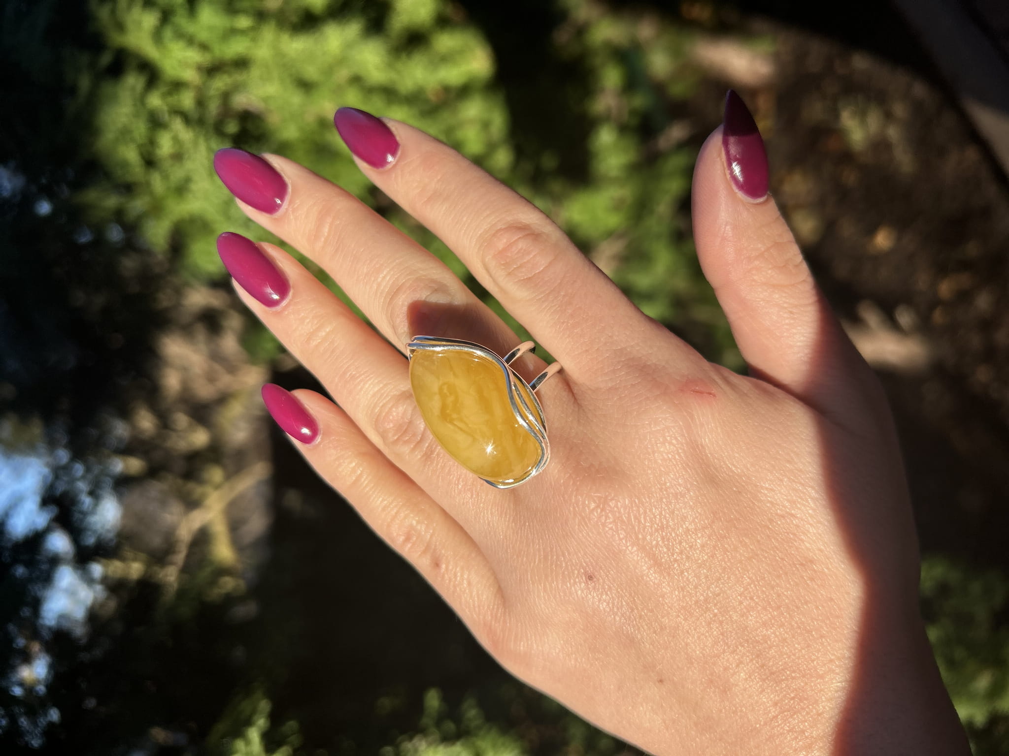 Pierścionek srebrny z bursztynem bałtyckim REGULOWANY