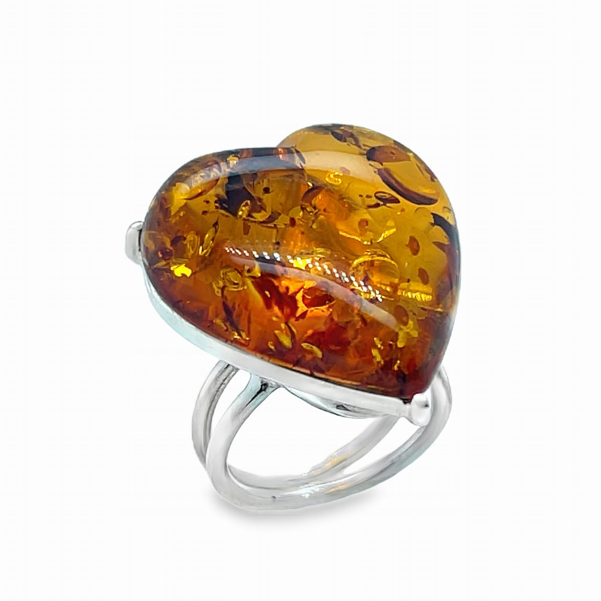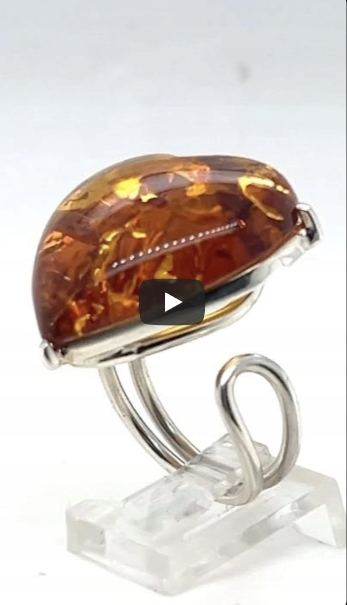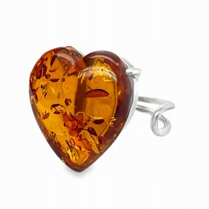 Pierścionek srebrny z bursztynem bałtyckim SERCE