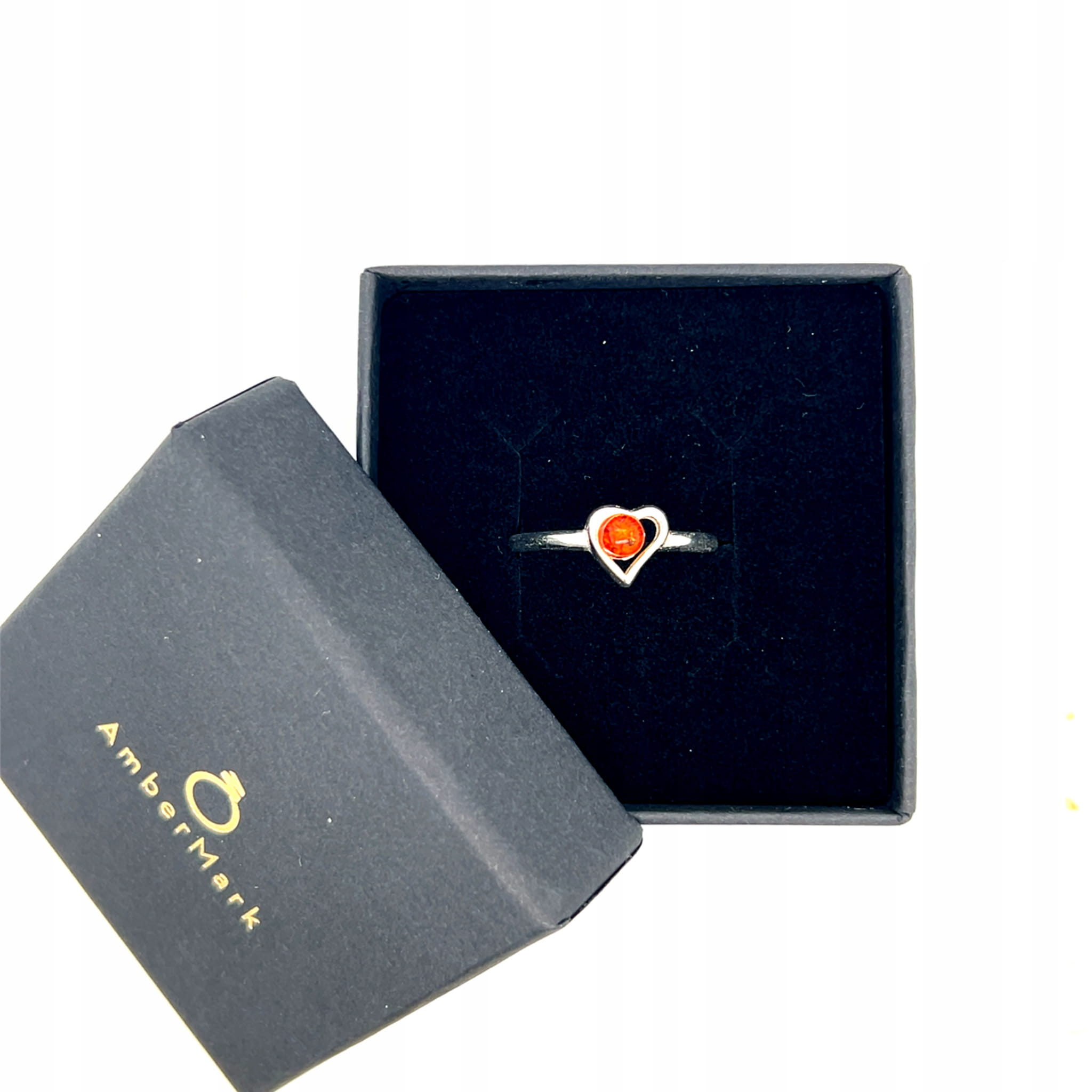 Pierścionek srebrny z bursztynem bałtyckim serce ROZMIAR 14