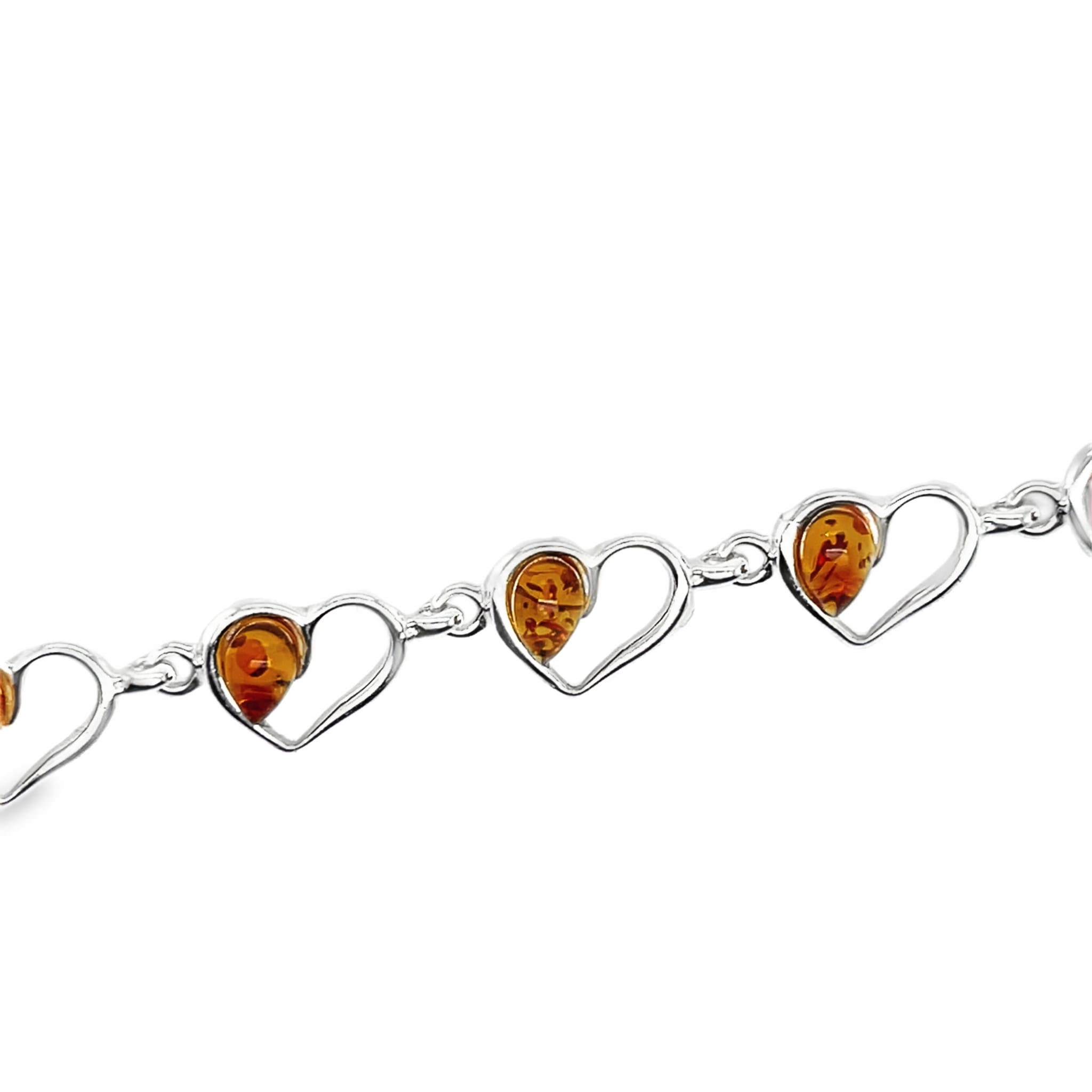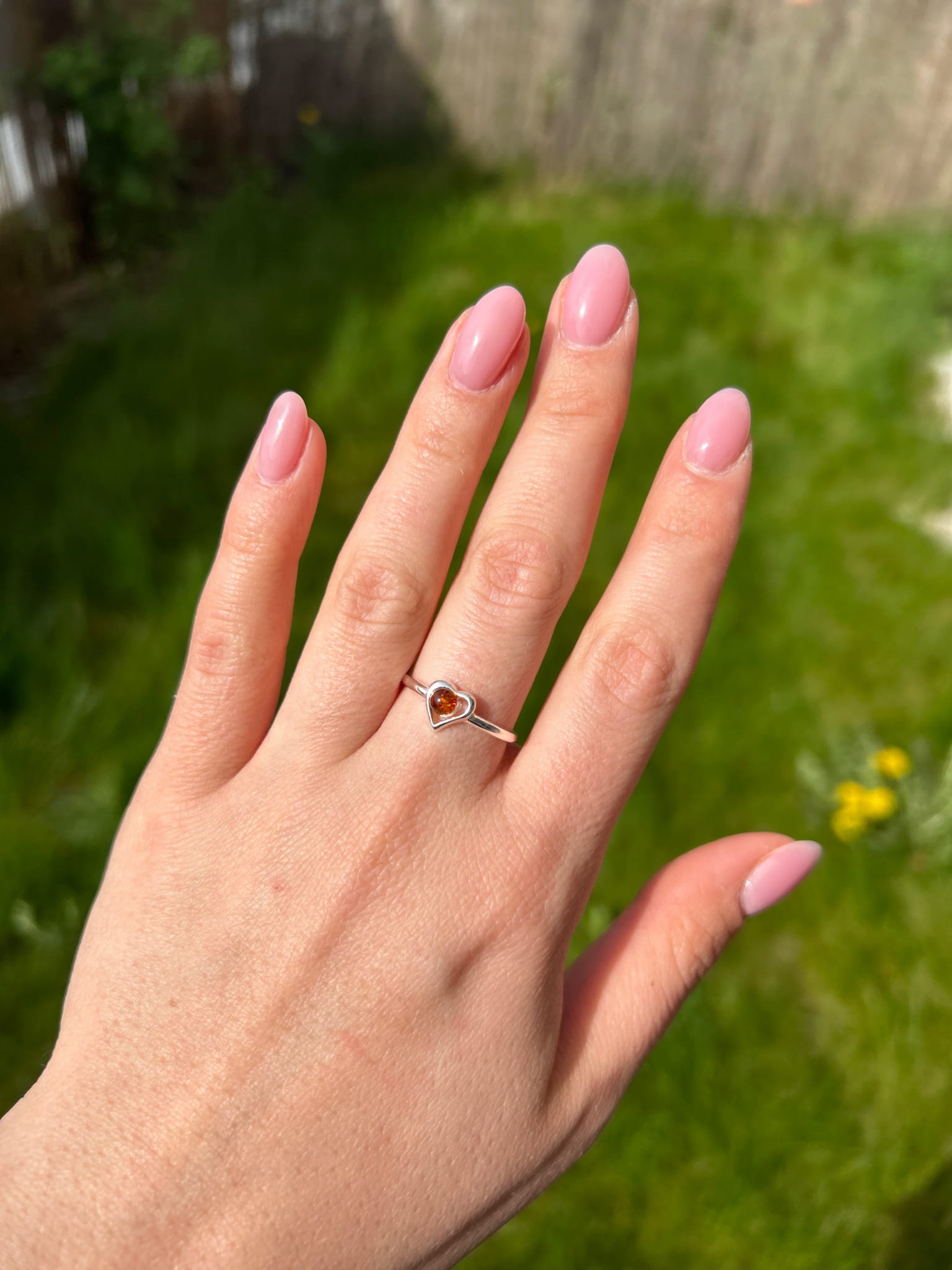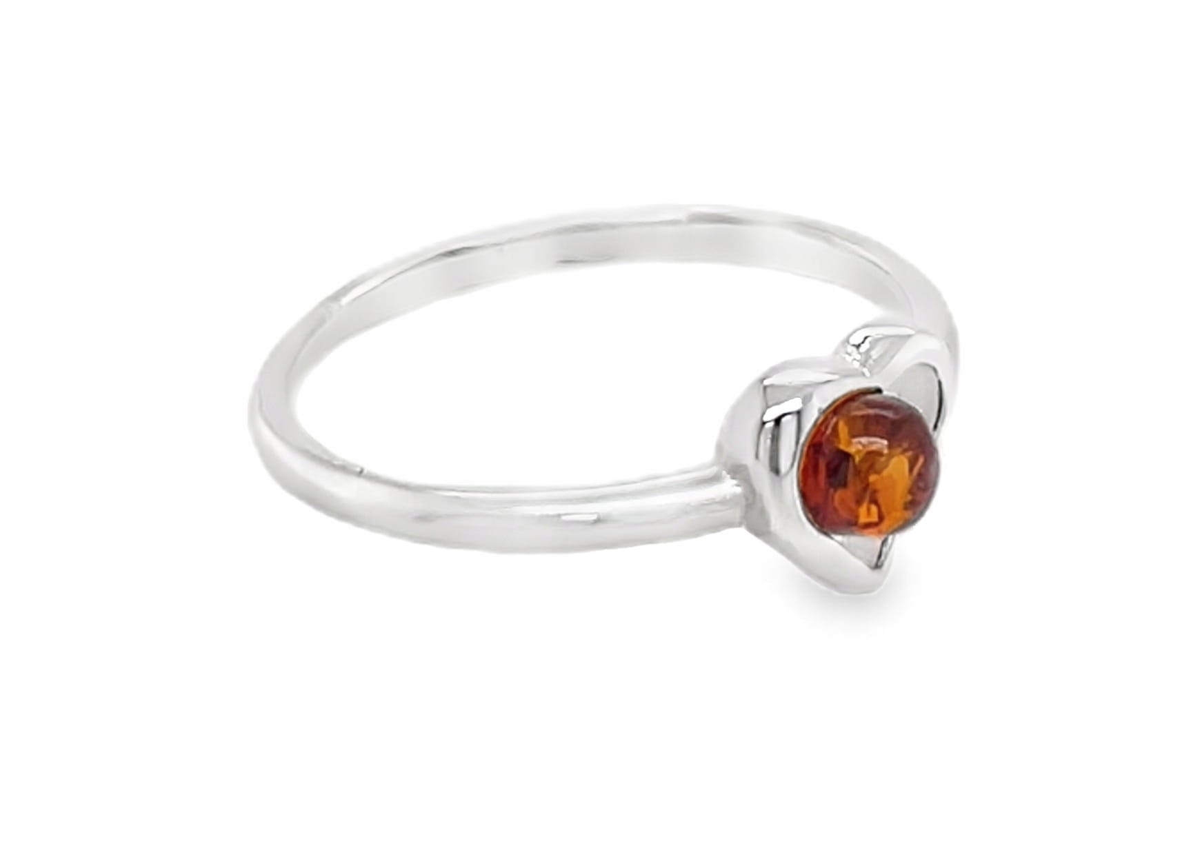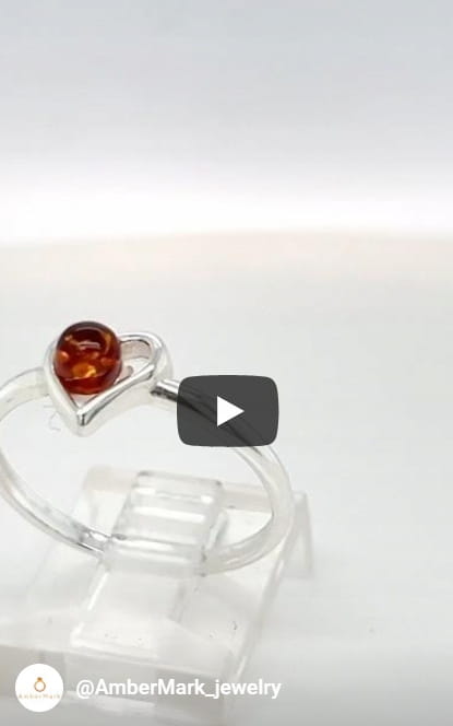 Pierścionek srebrny z bursztynem bałtyckim serce koniak