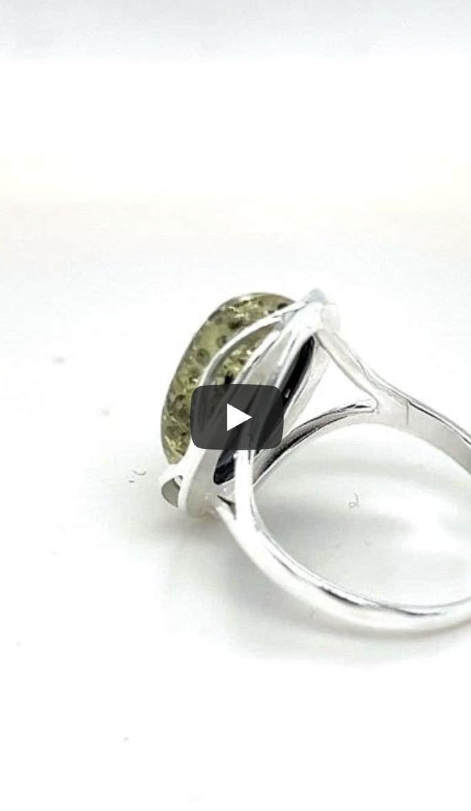 Pierścionek srebrny z bursztynem zielonym ROZMIAR 20