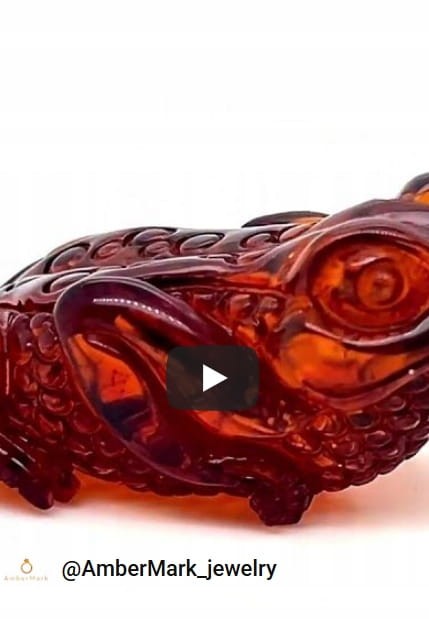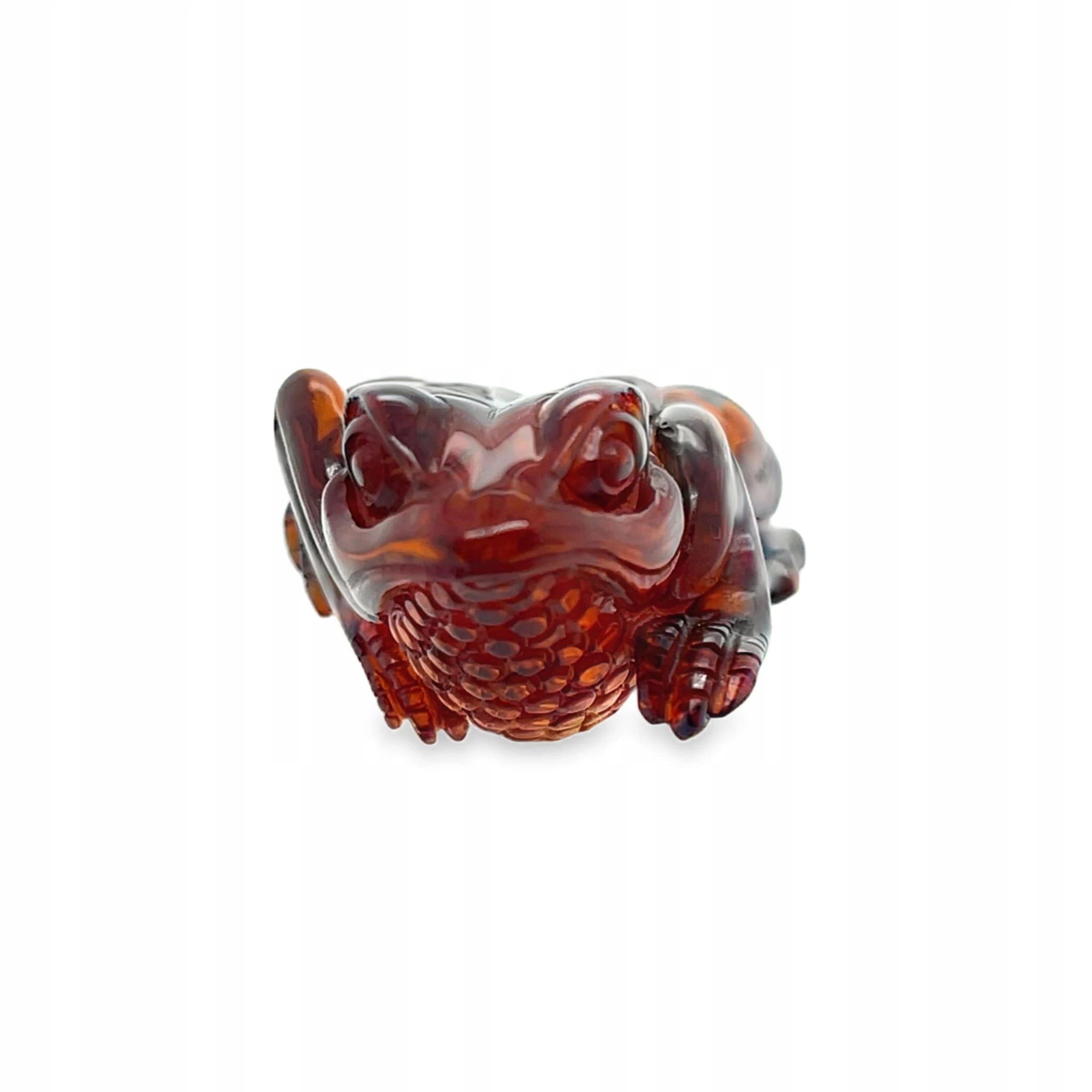 Rzeźba z bursztynu ręcznie rzeźbiona żaba koniakowy bursztyn bałtycki FILM