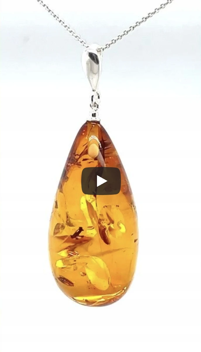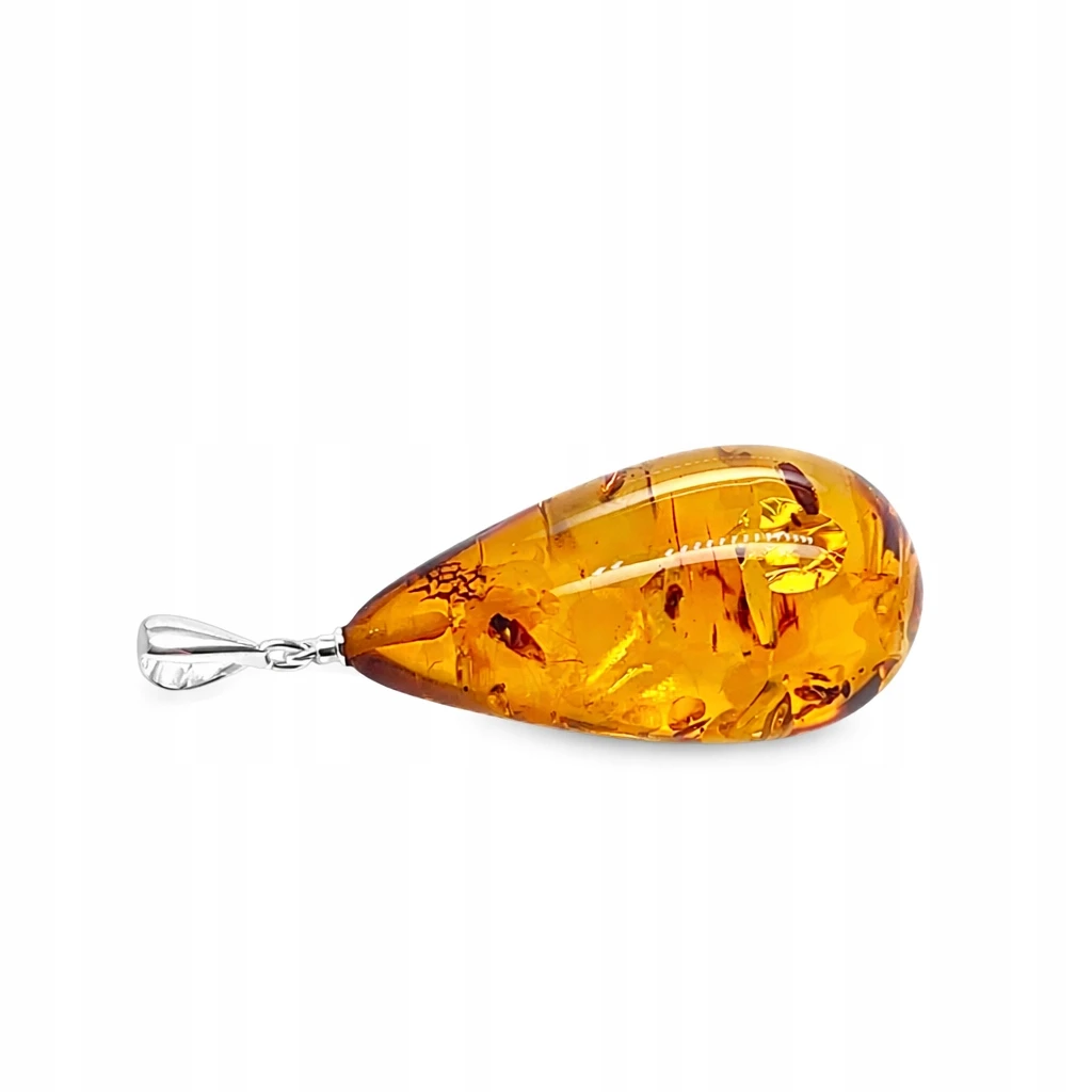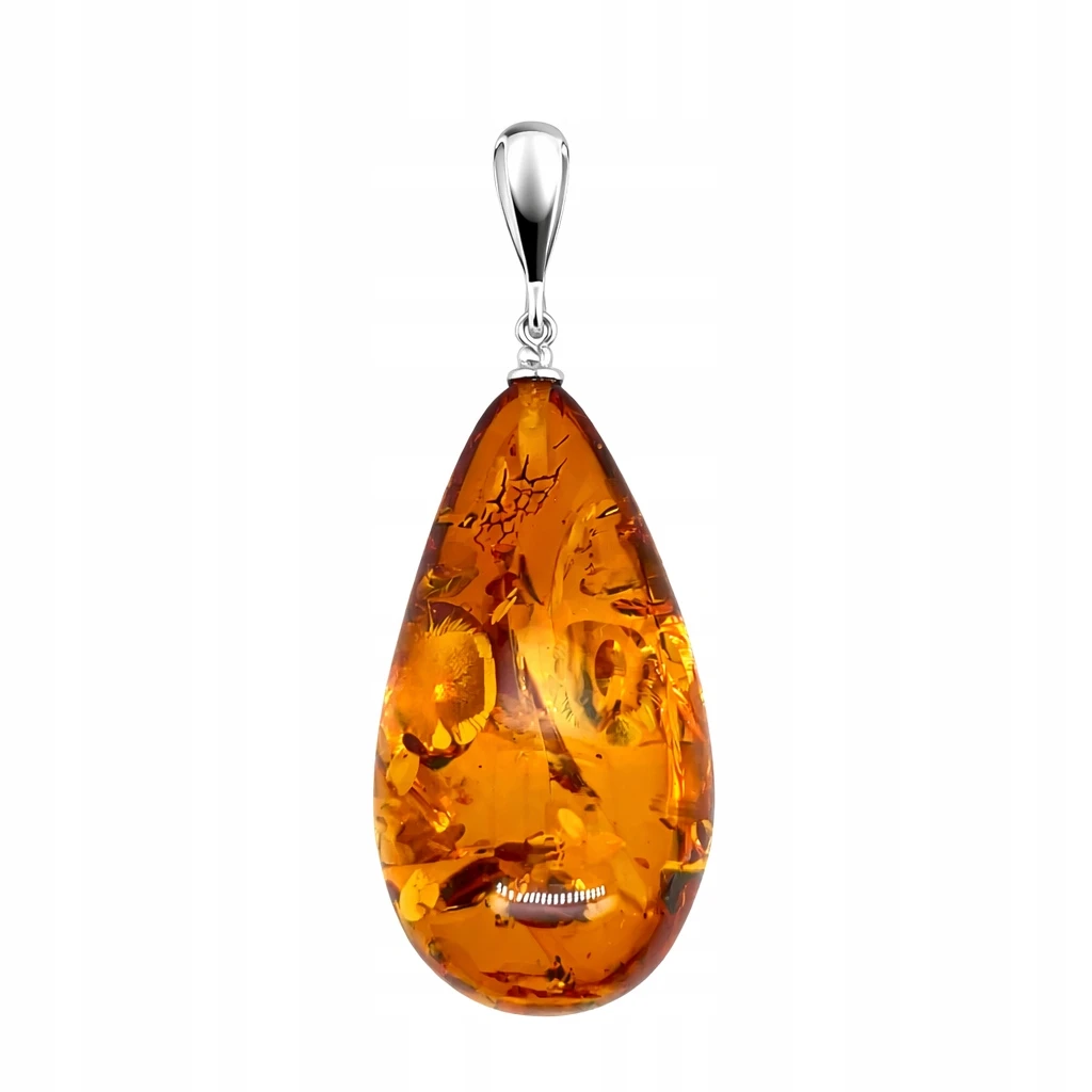 ✔️ Elegancka zawieszka wykonana ze srebra, ozdobiona naturalnym bursztynem o głębokiej, koniakowej barwie.