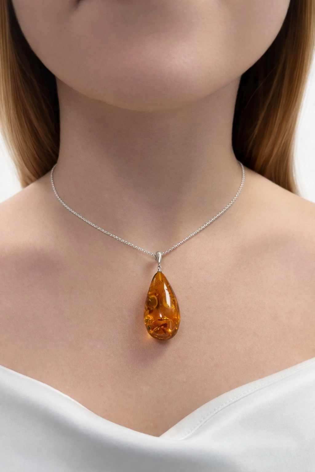 ✔️ Smukła, opływowa forma srebrnej oprawy subtelnie otacza bursztyn, tworząc harmonijną, lekką i nowoczesną kompozycję.