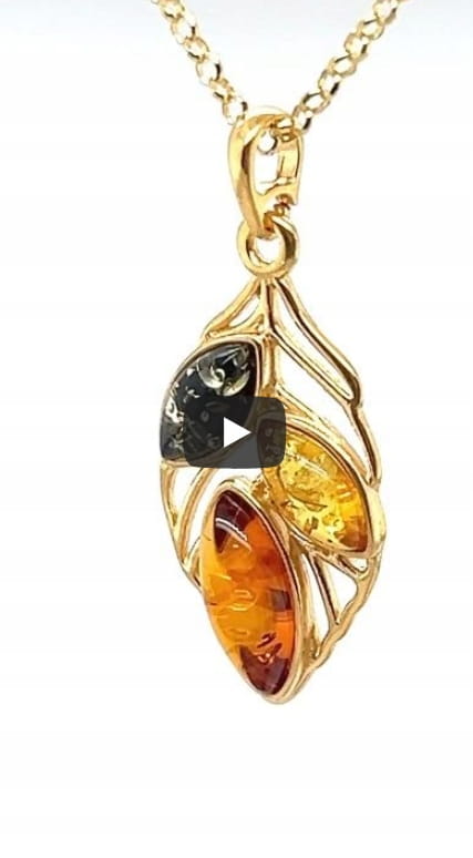 Surowiec: srebro, pozłocone czystym złotem(grubość złocenia 2 mikrony), bursztyn bałtycki