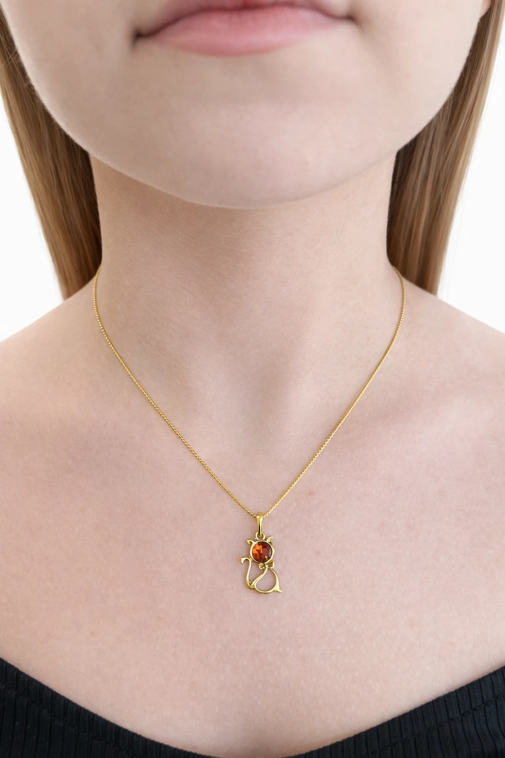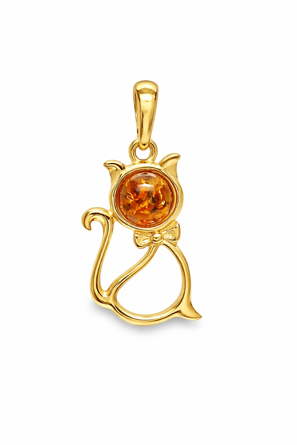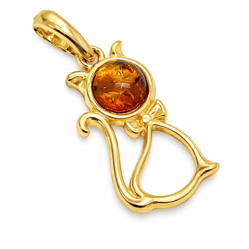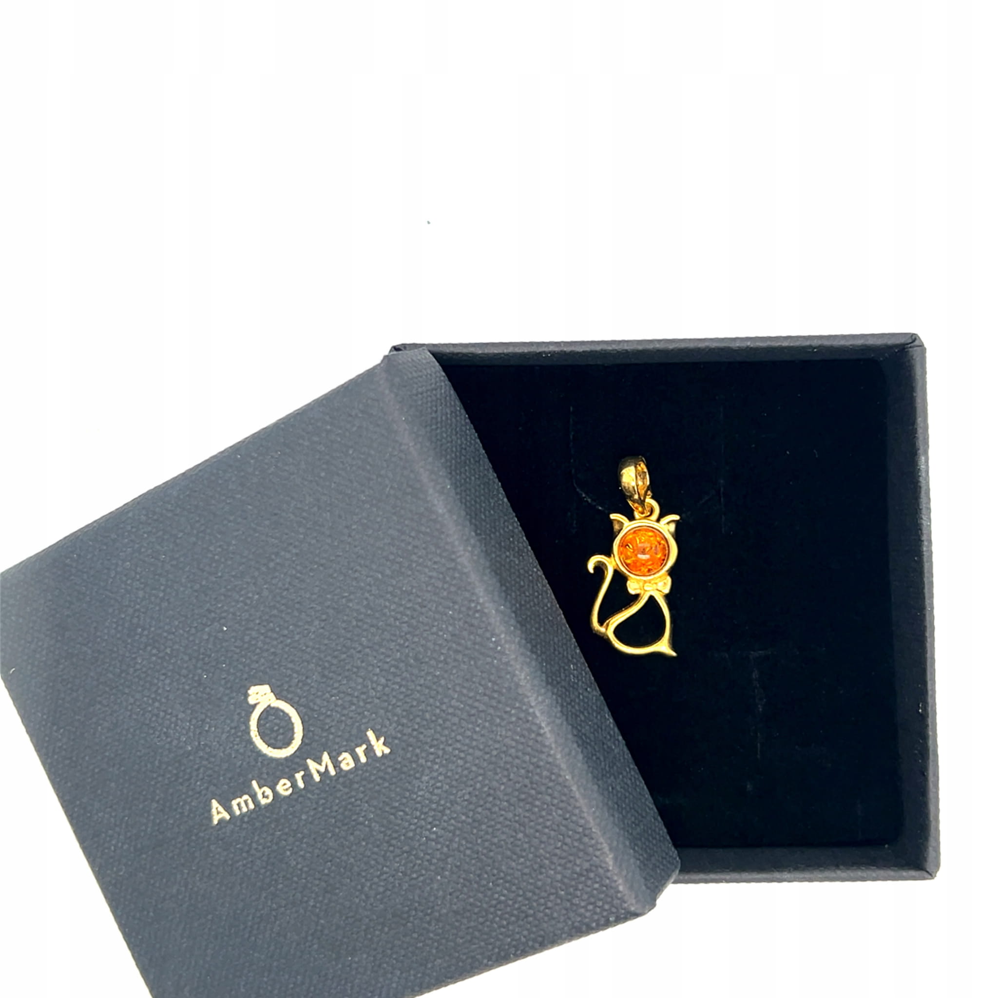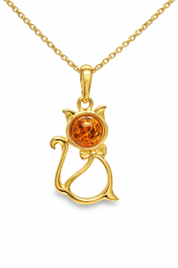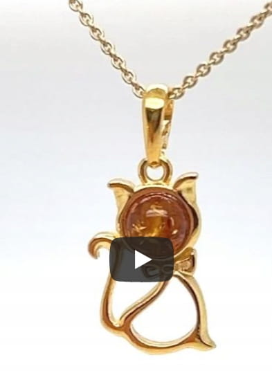 Zawieszka srebrna pozłacana z bursztynem KOT