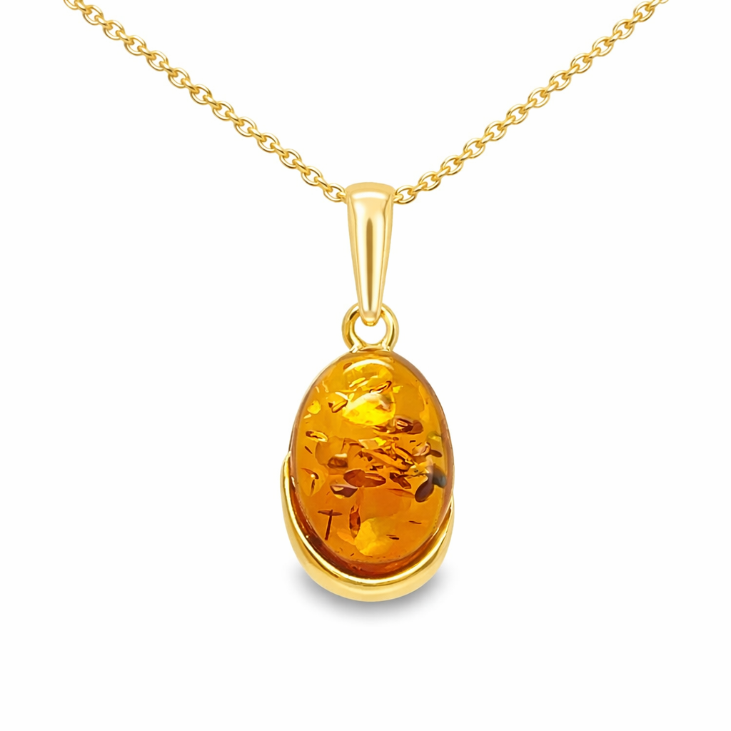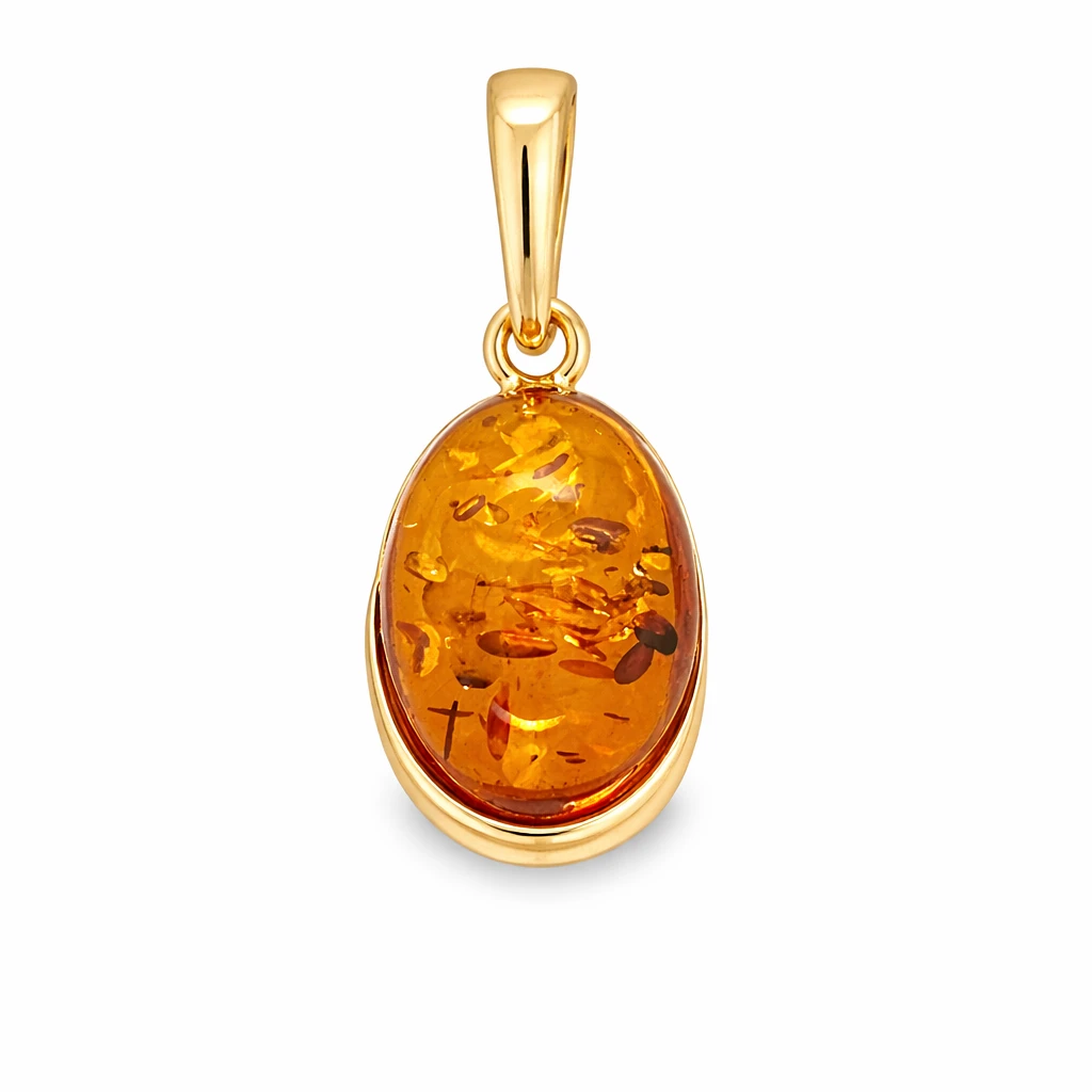 Zawieszka srebrna pozłacana z bursztynem OWAL