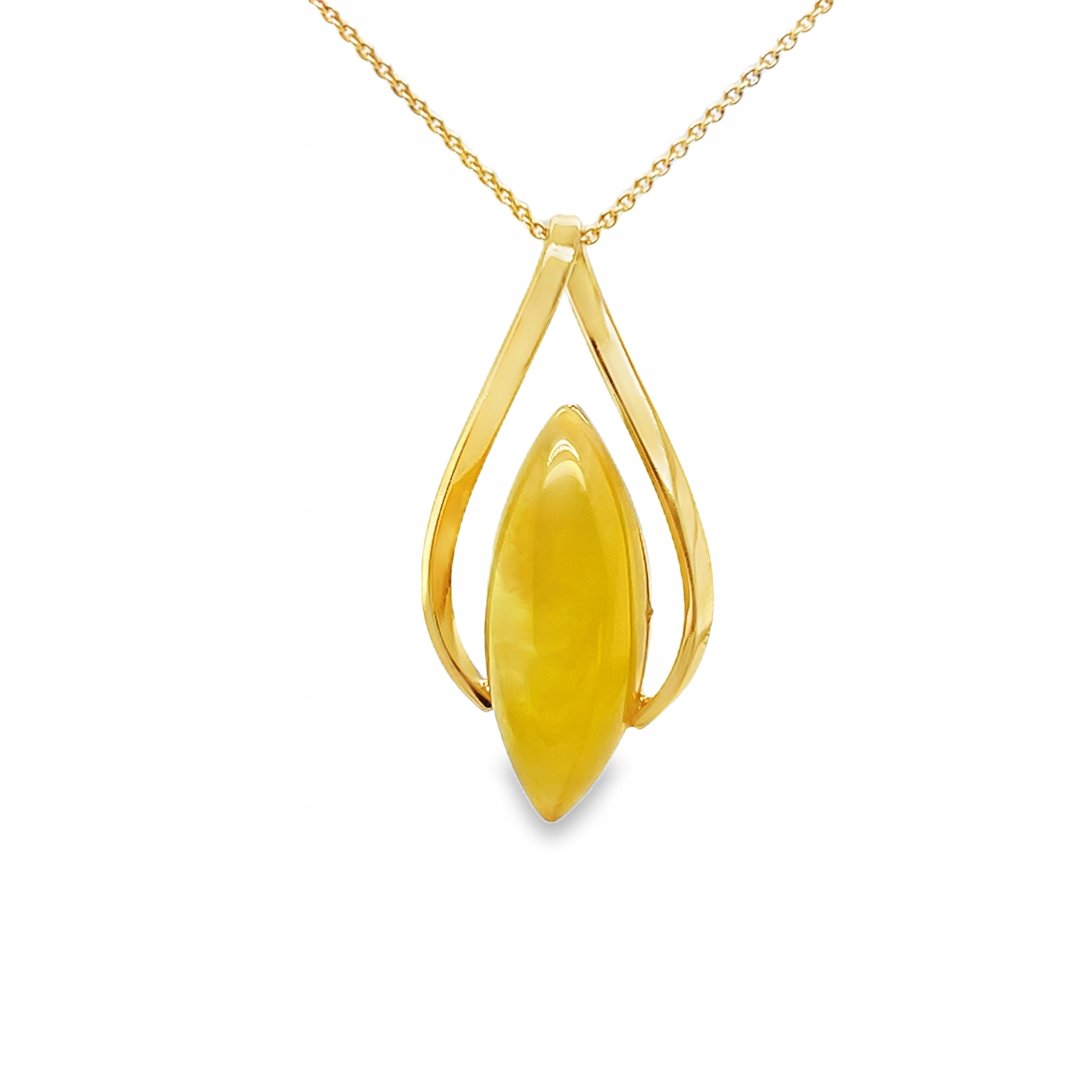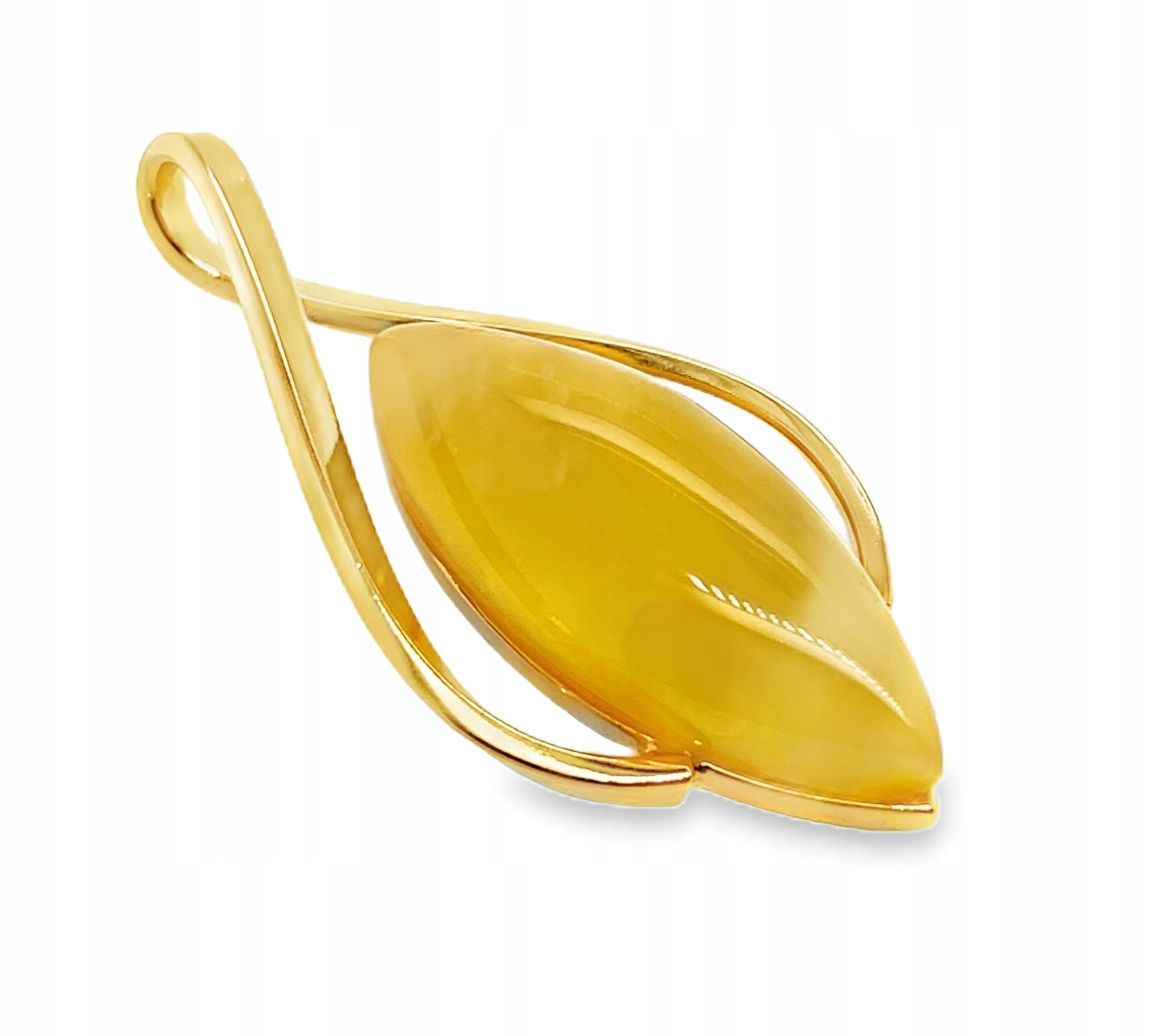 Głównym elementem wisiorka jest bursztyn bałtycki, który został starannie osadzony w srebrnej oprawie próby 925, które zostało pozłocone warstwą o grubości dwóch mikronów. Biżuteria pokryta taką powłoką galwaniczną, przy odpowiednim użytkowaniu będzie długo cieszyła się świeżością oraz złotym blaskiem.