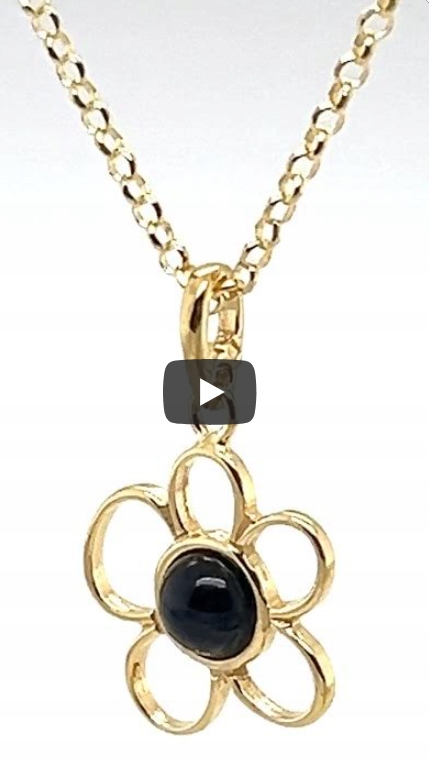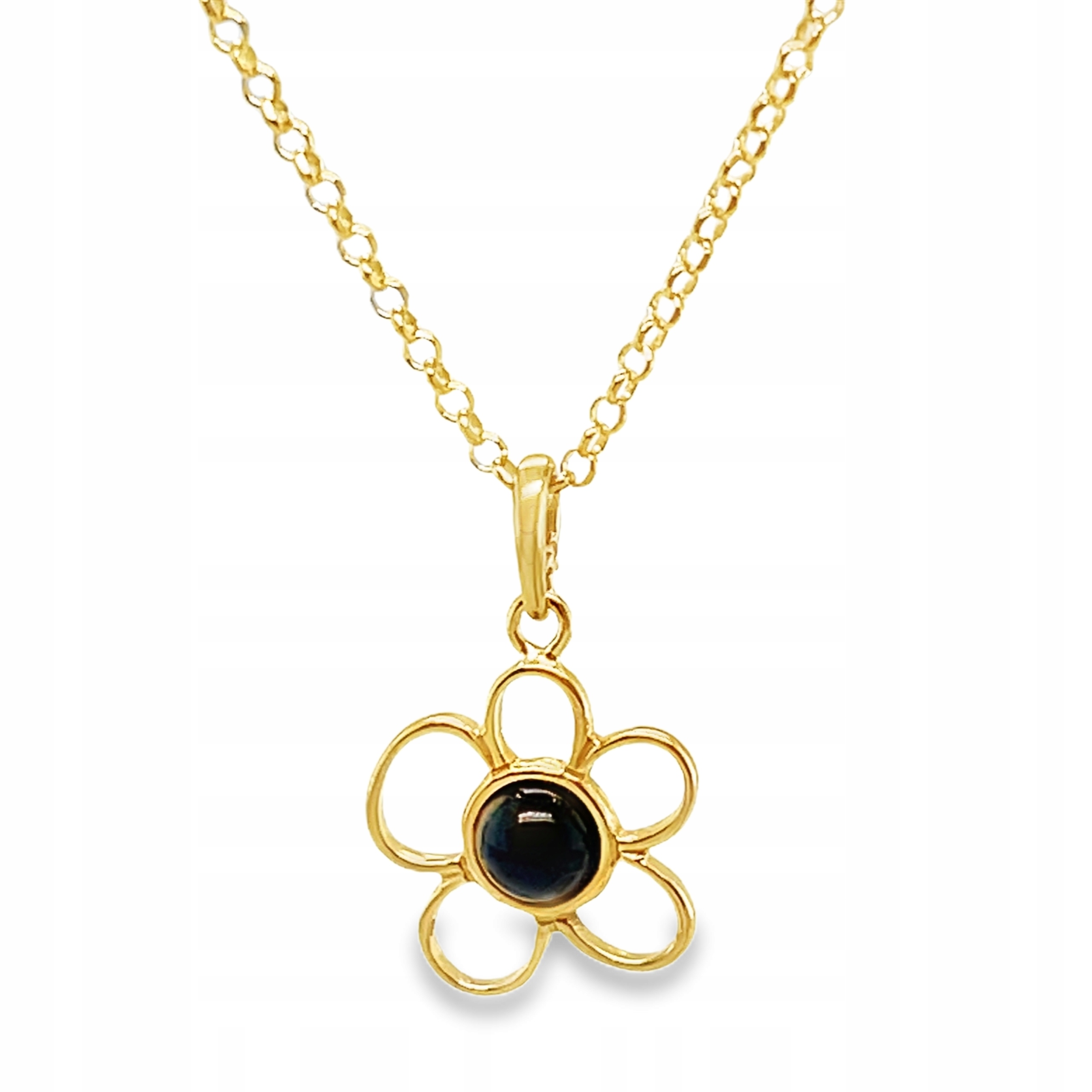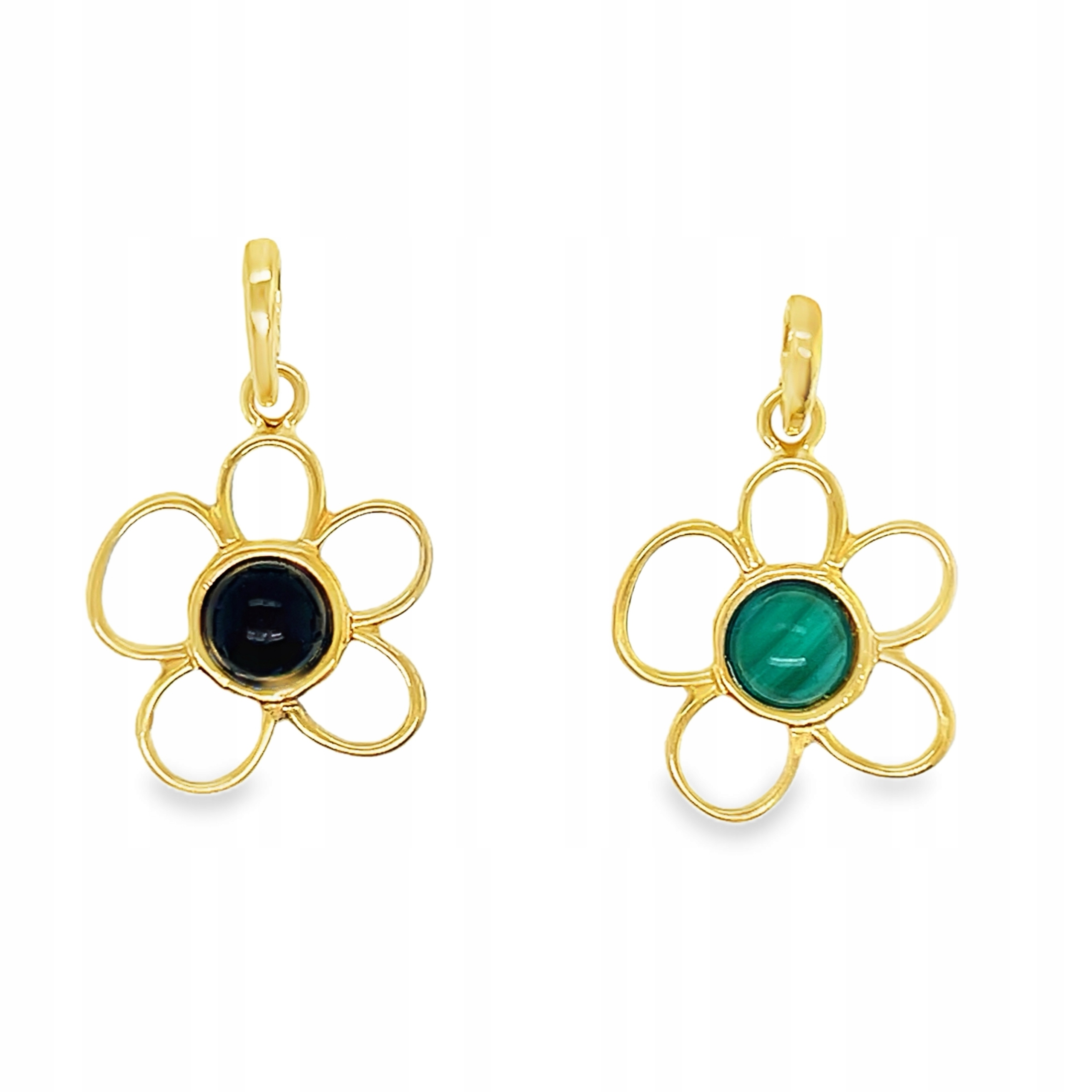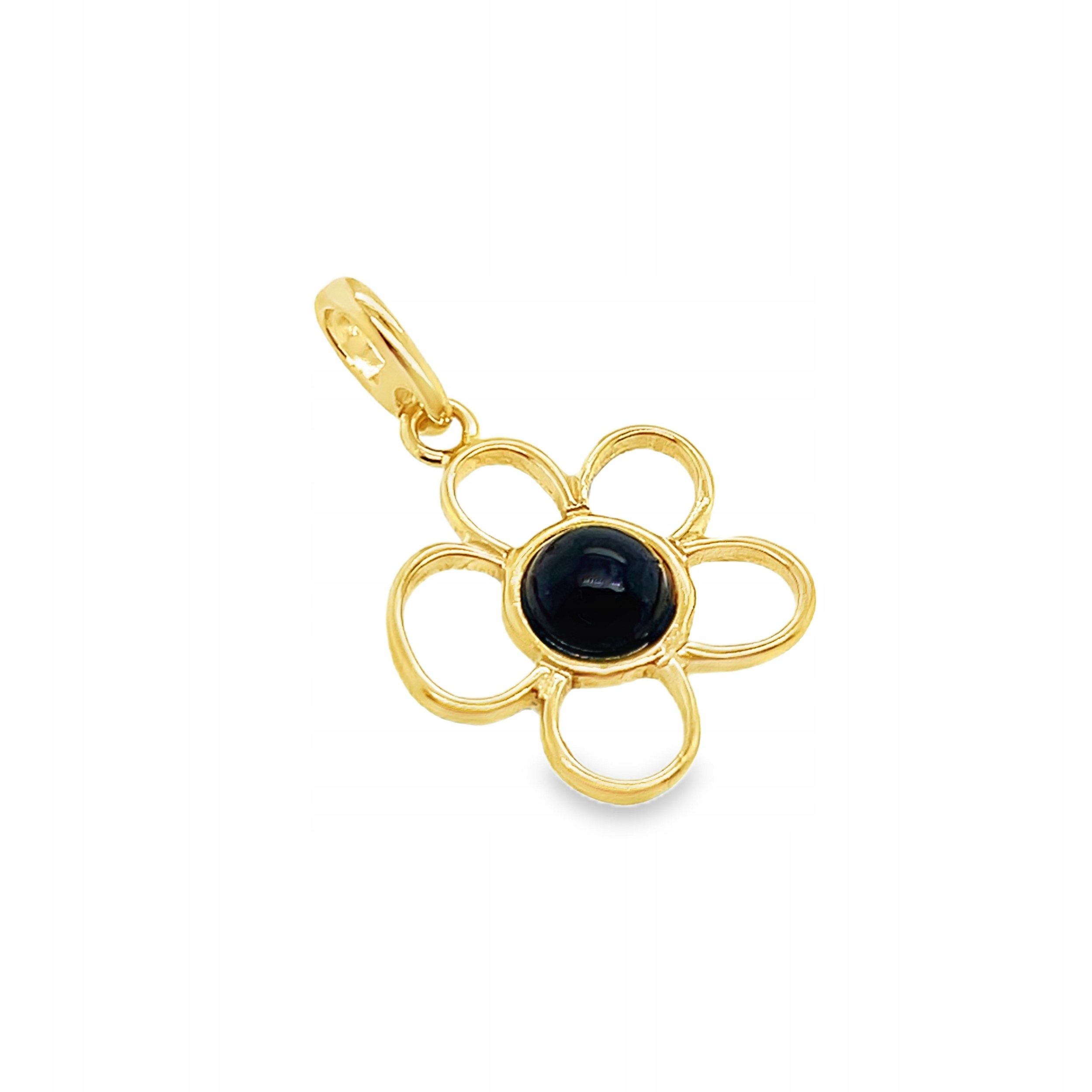 Zawieszka srebrna pozłacana z onyksem naturalnym złoto kwiatek FILM