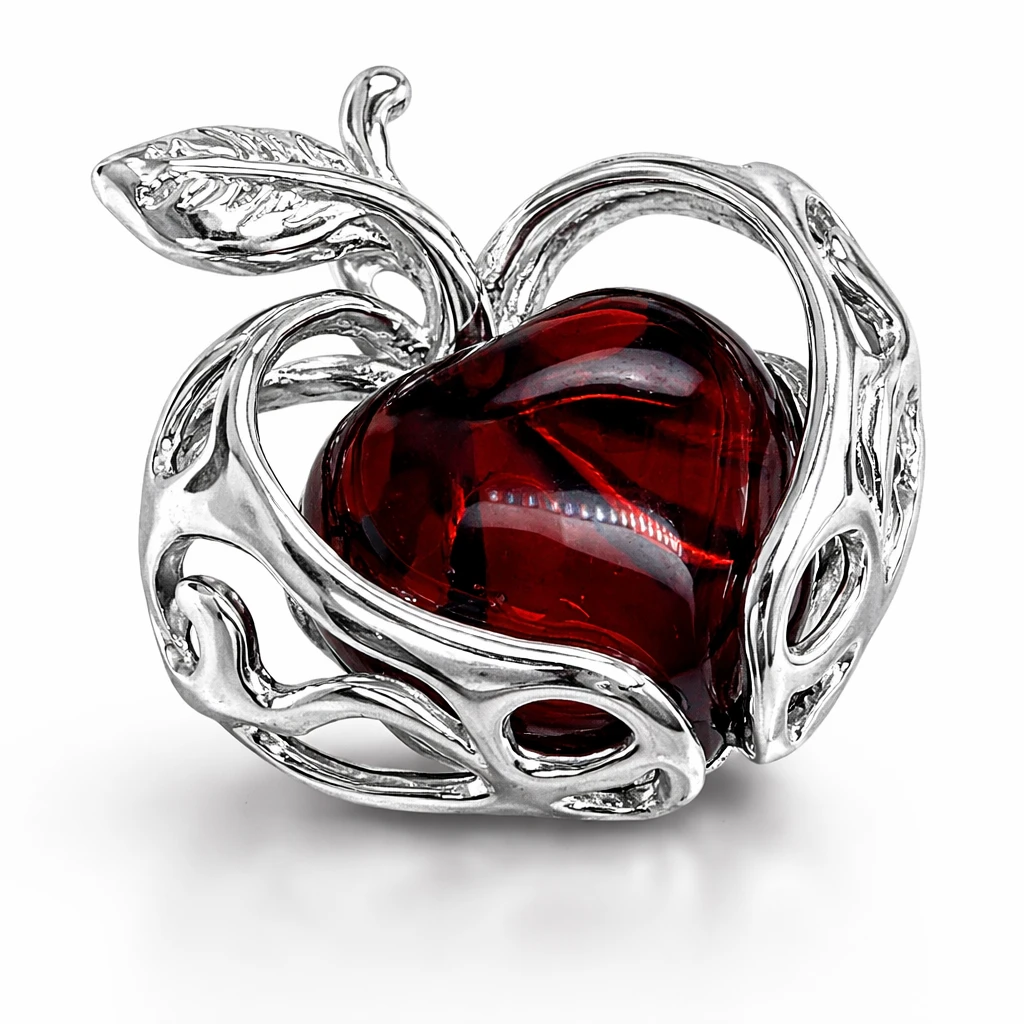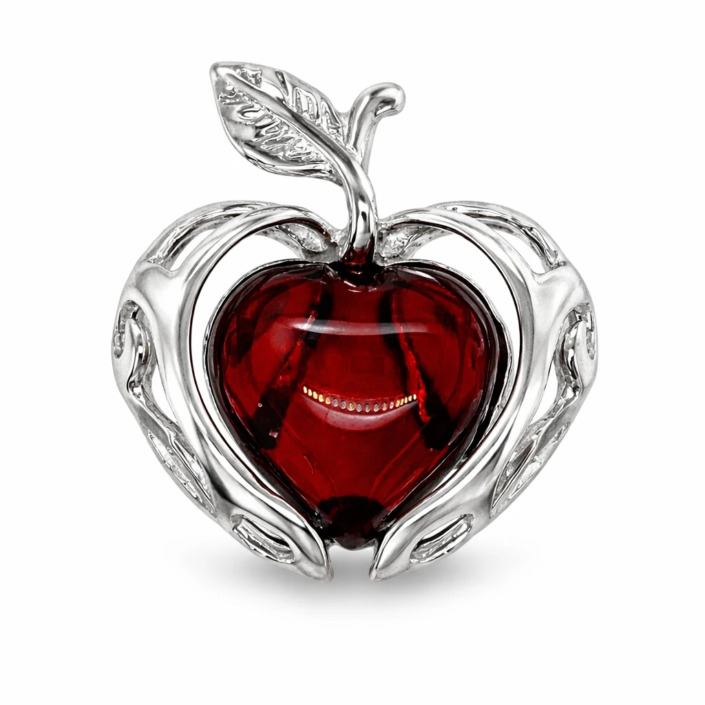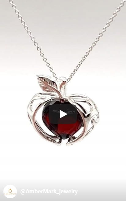 Zawieszka srebrna z bursztynem JABŁKO