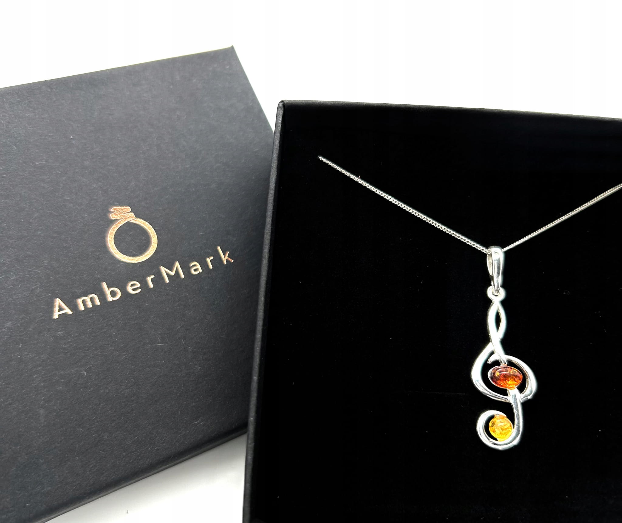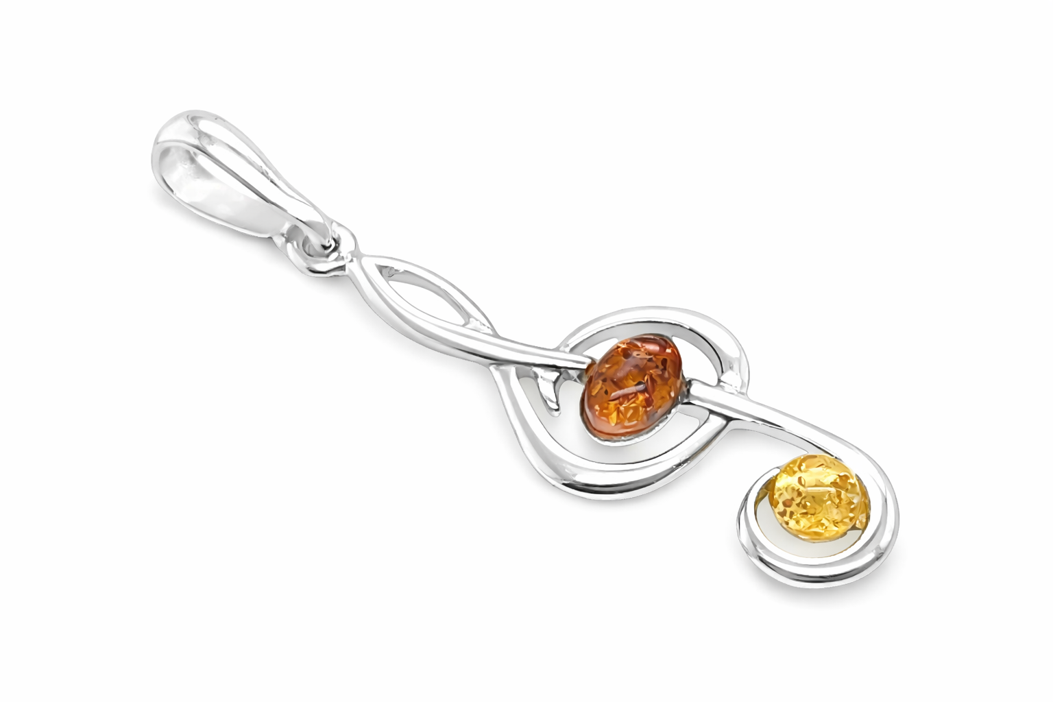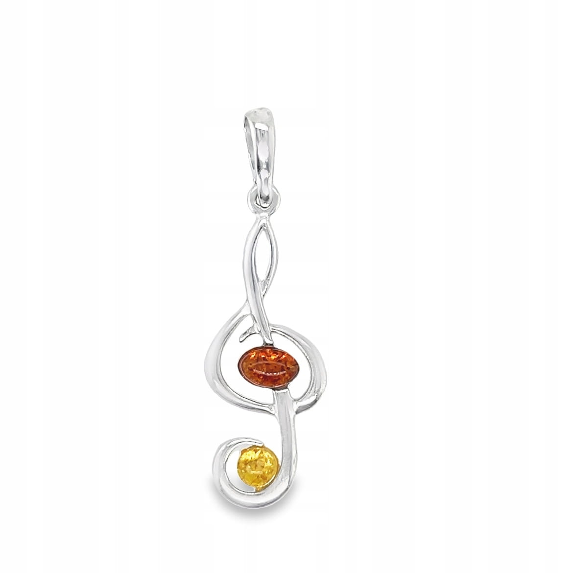 Zawieszka srebrna z bursztynem KLUCZ WIOLINOWY
