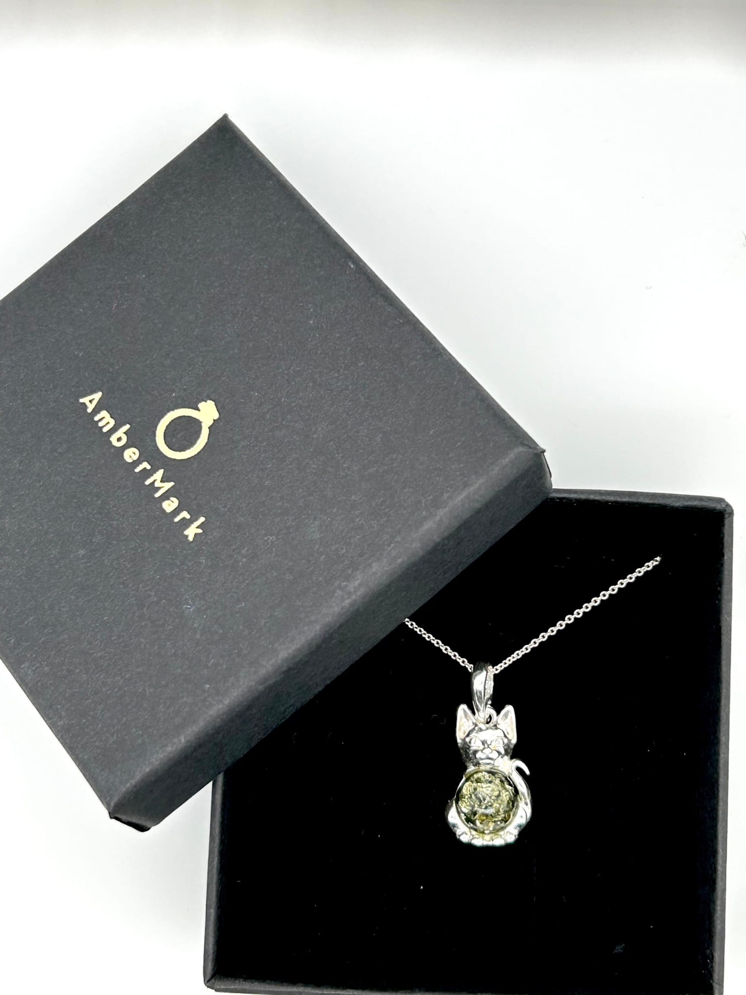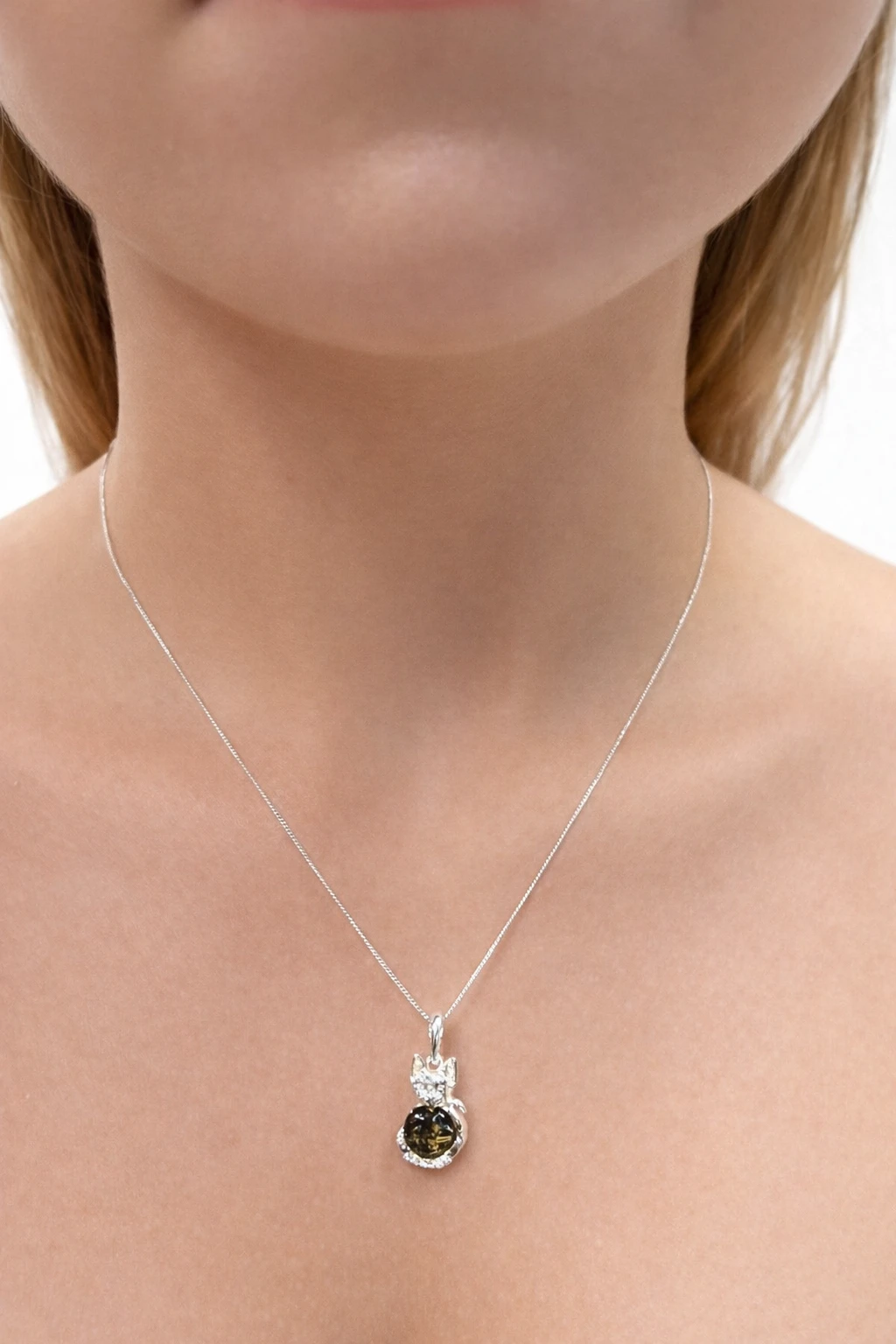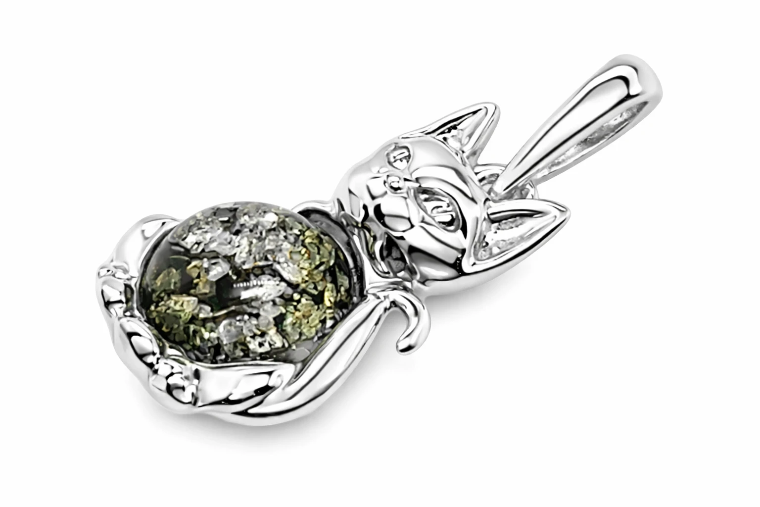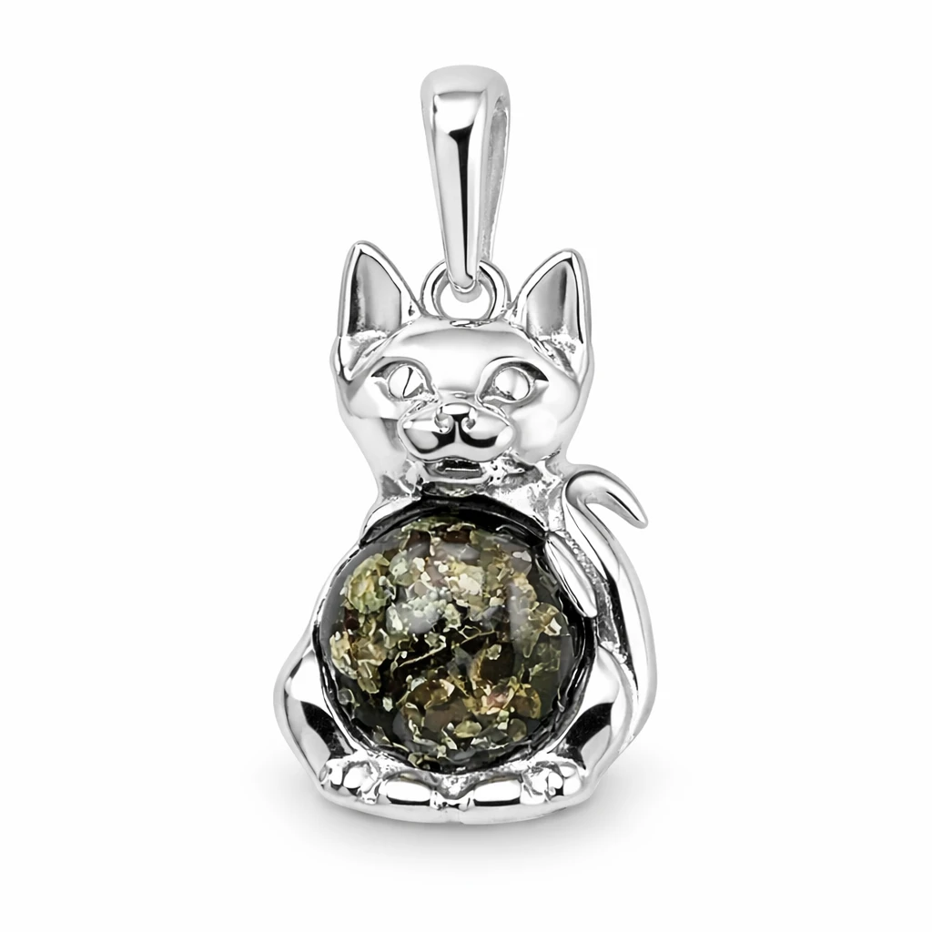 Zawieszka srebrna z bursztynem KOT