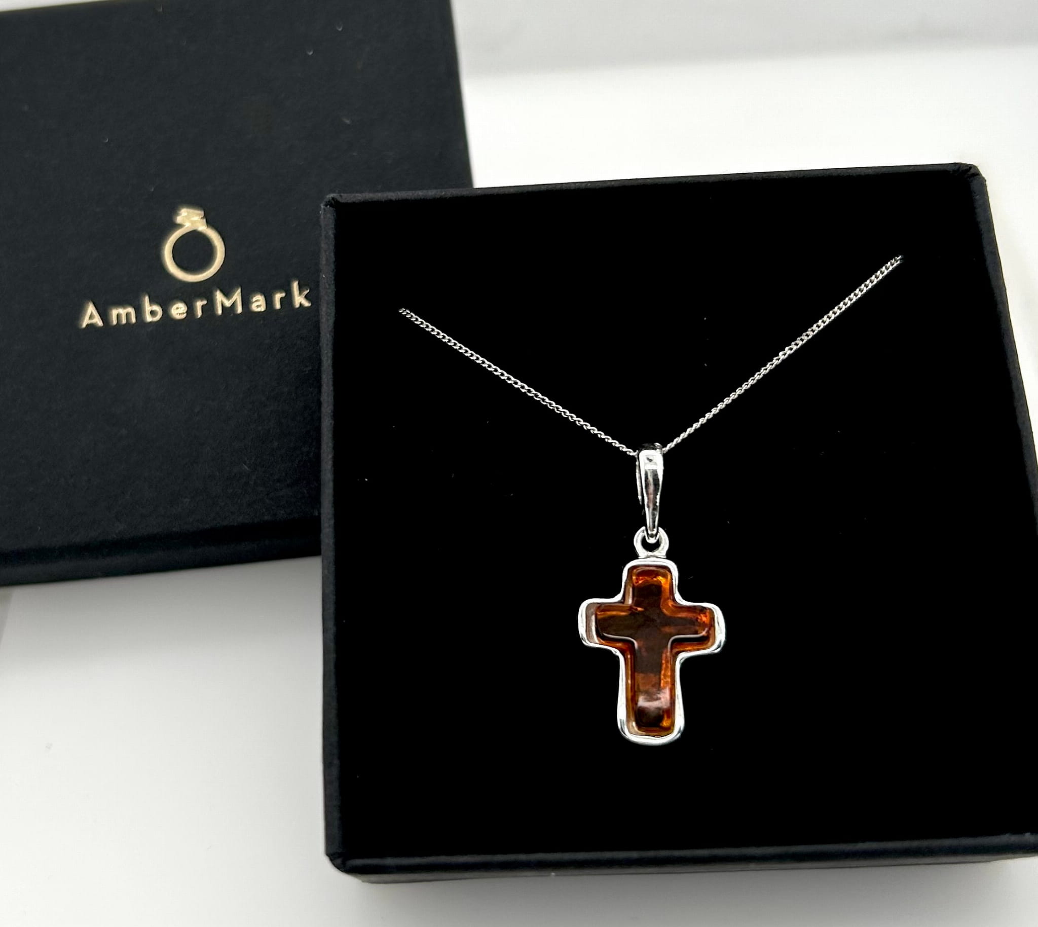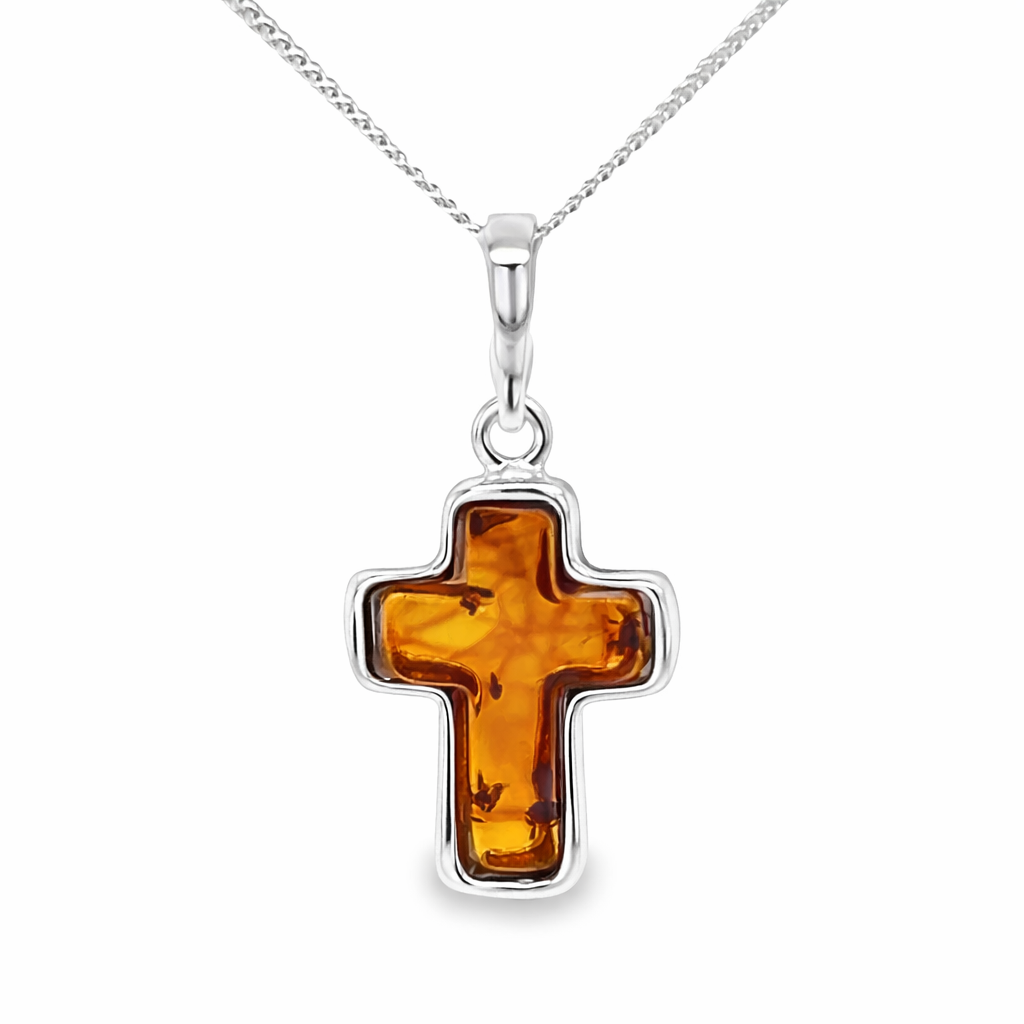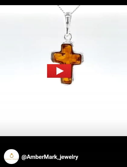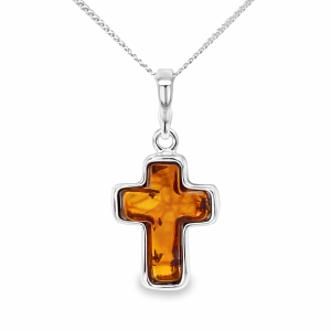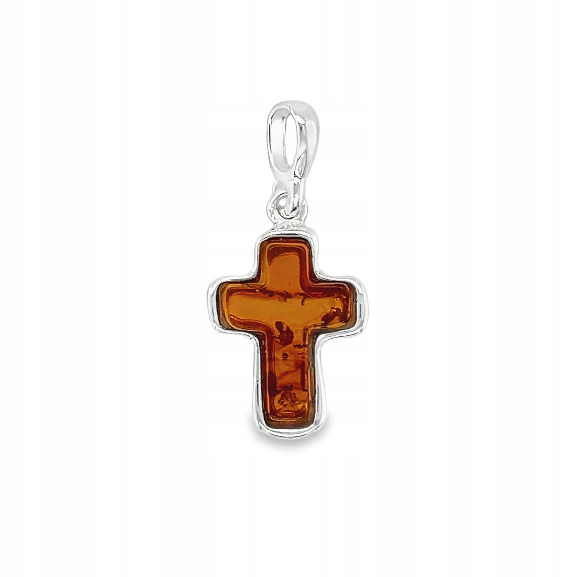 Zawieszka srebrna z bursztynem KRZYŻYK