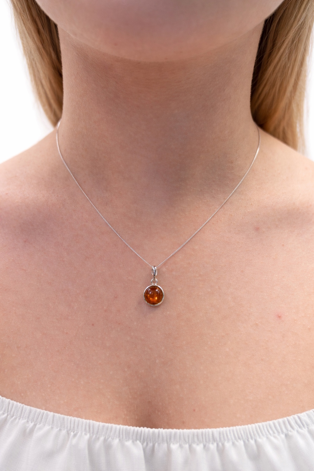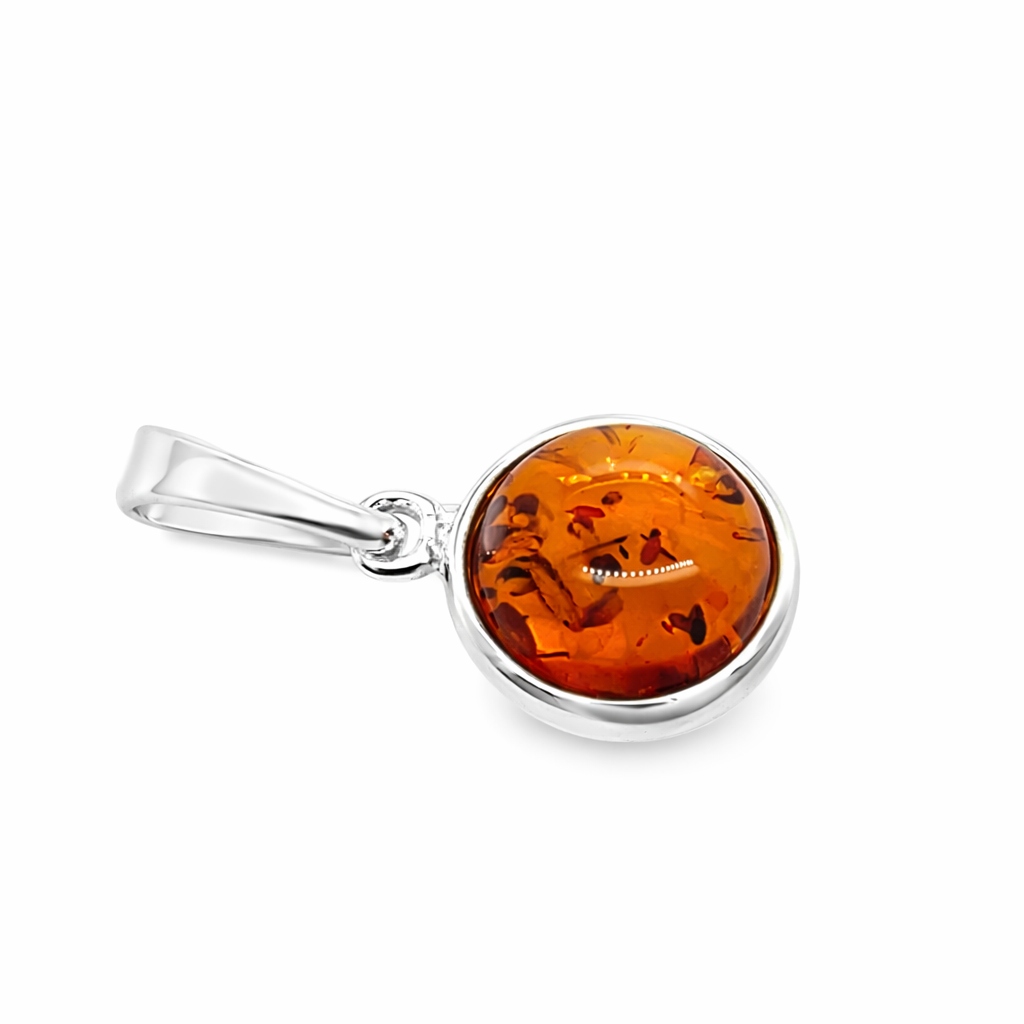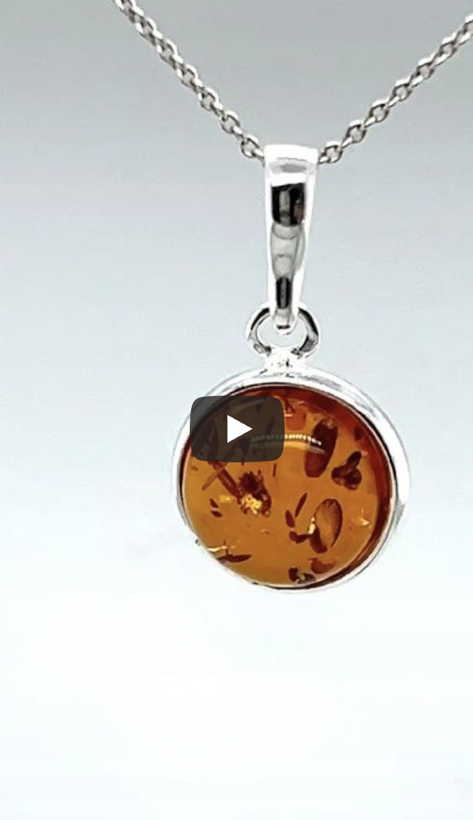 ✔️ Elegancka zawieszka wykonana ze srebra, ozdobiona naturalnym bursztynem o koniakowej barwie.
