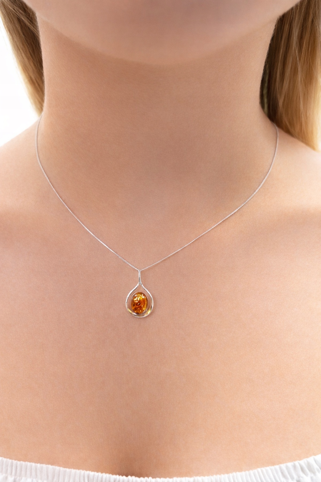 Srebrna zawieszka z bursztynem – minimalistyczna forma