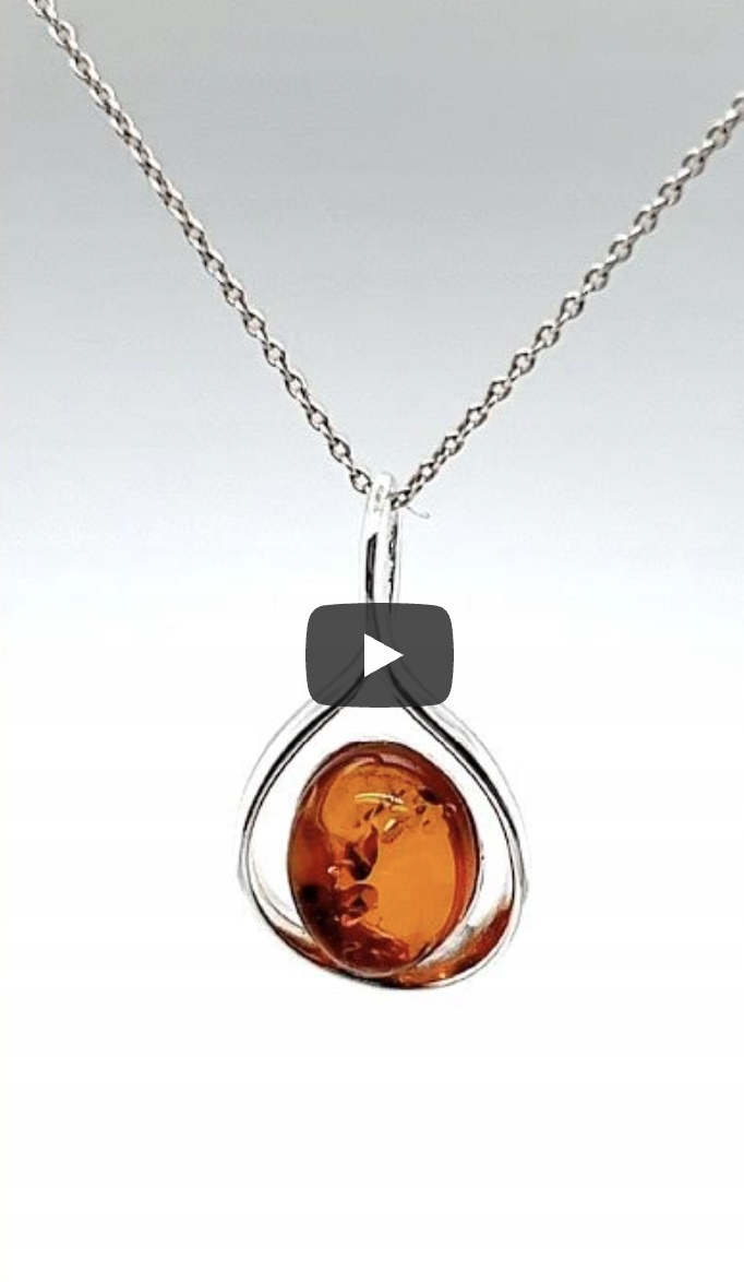 ✔️ Elegancka zawieszka wykonana ze srebra, ozdobiona naturalnym bursztynem o ciepłej, koniakowej barwie.