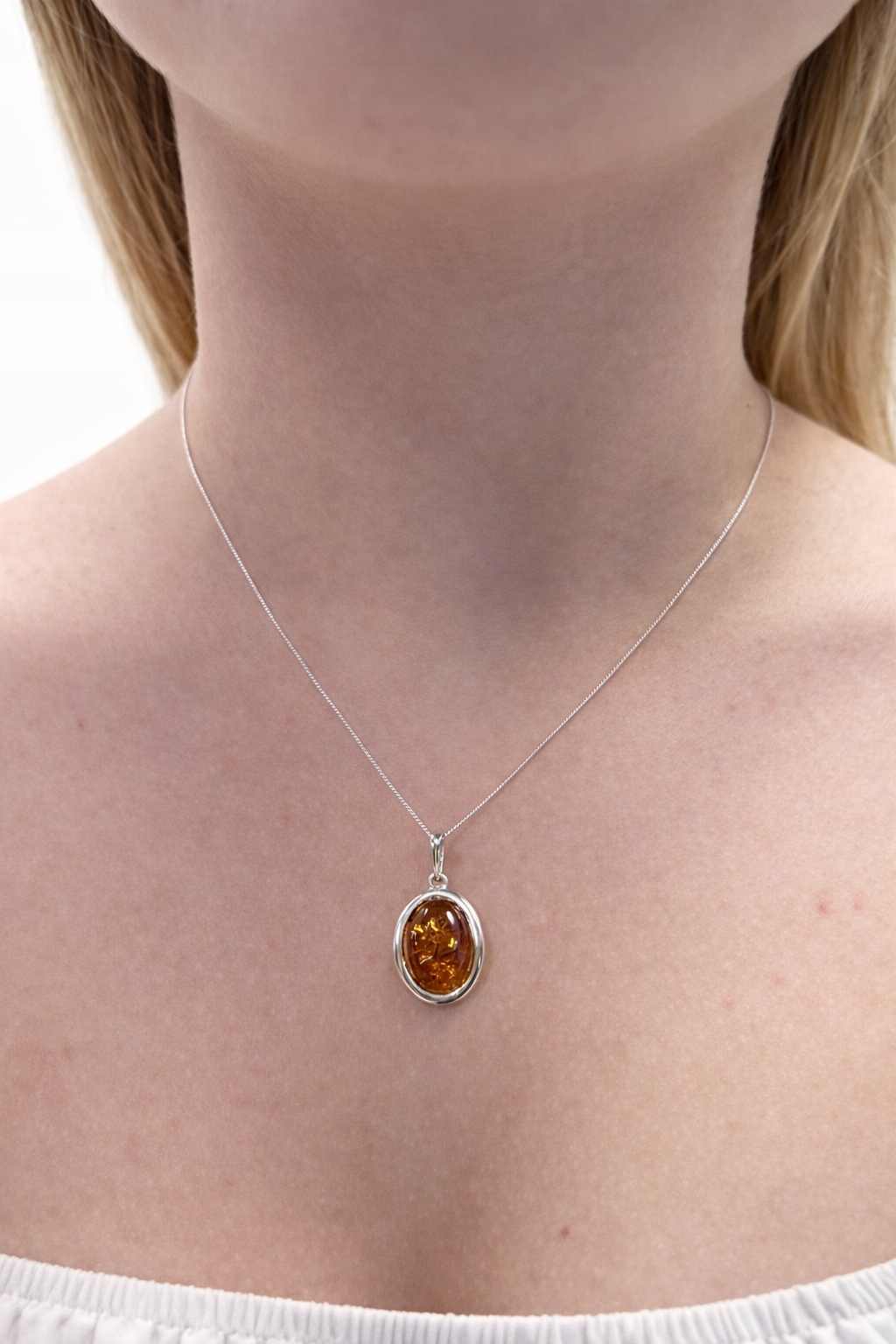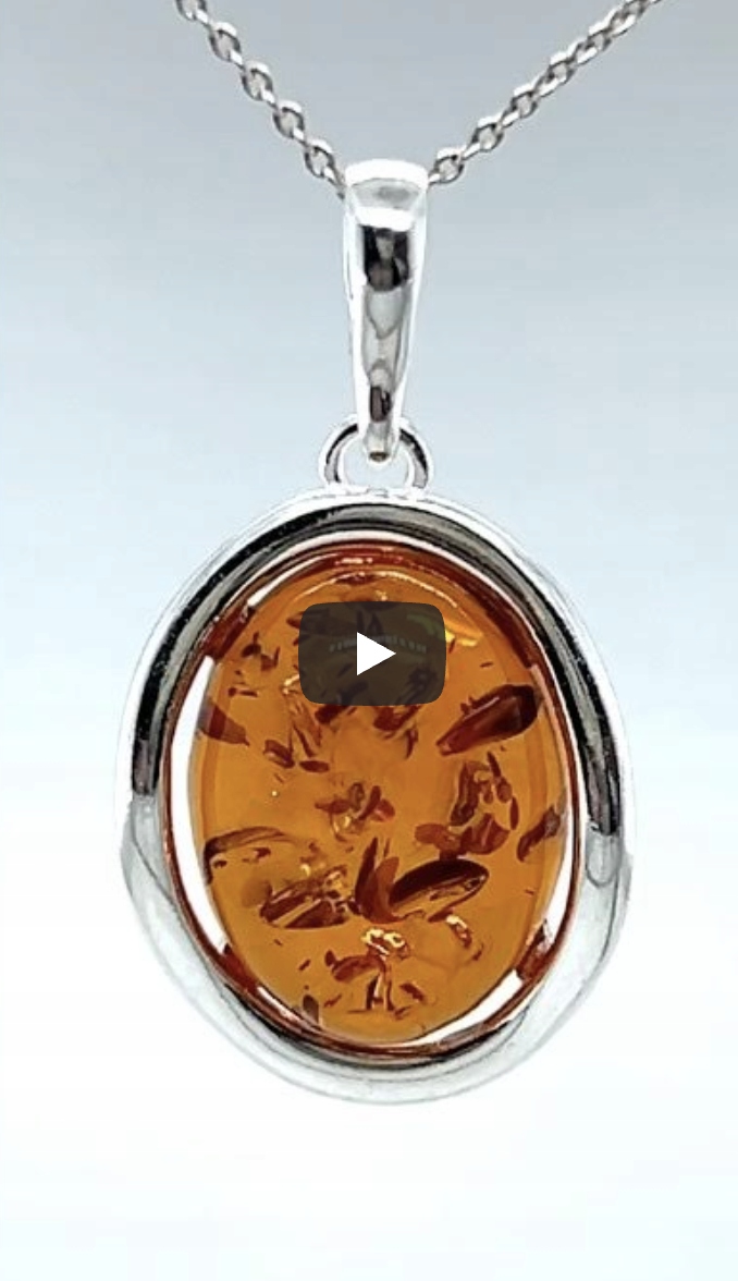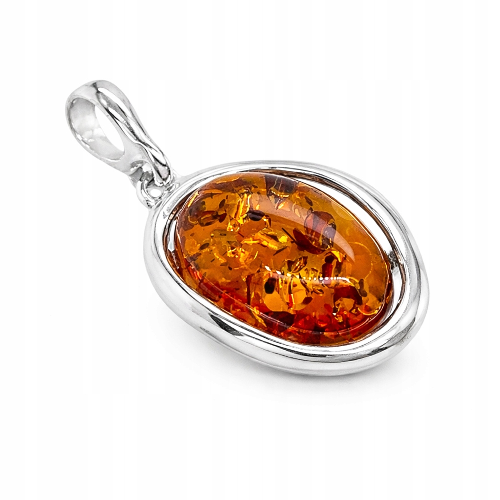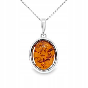 Zawieszka srebrna z bursztynem OWAL