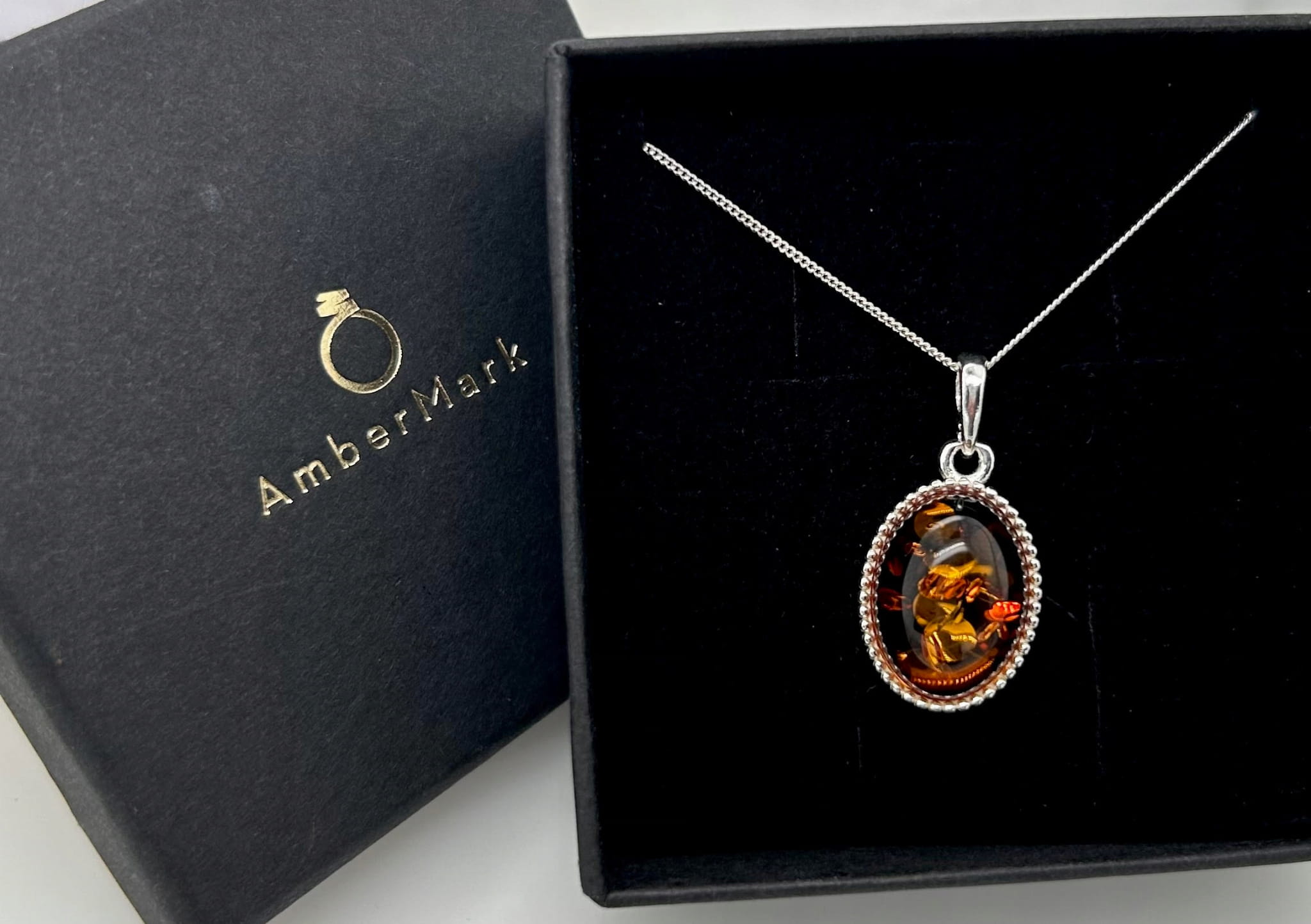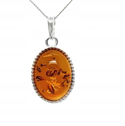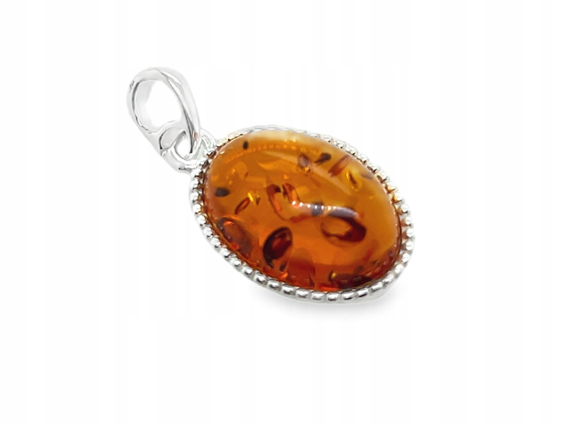 Głównym elementem wisiorka jest bursztyn bałtycki, który został starannie osadzony w srebrnej oprawie próby 925.