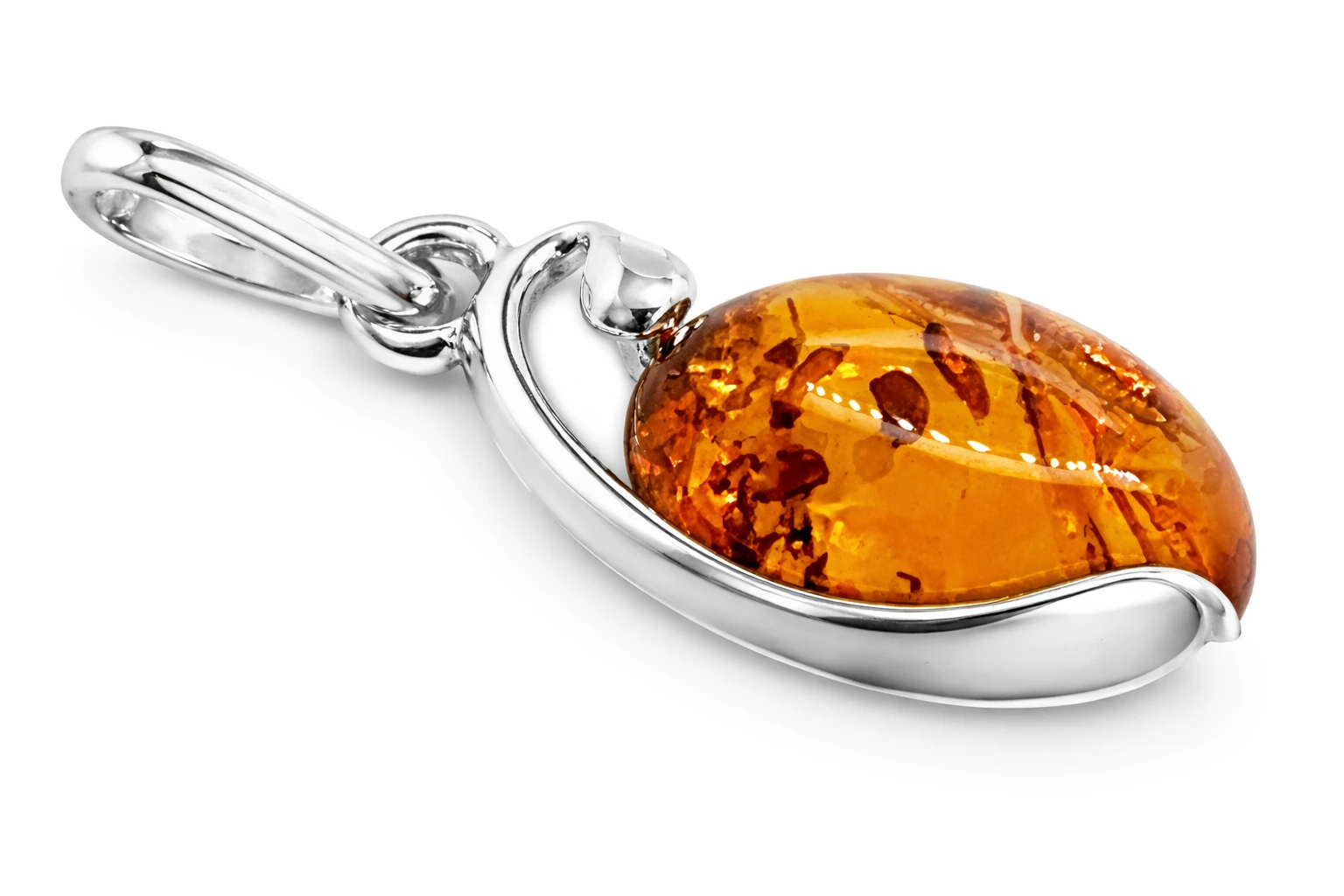 Głównym elementem wisiorka jest bursztyn bałtycki, który został starannie osadzony w srebrnej oprawie próby 925.