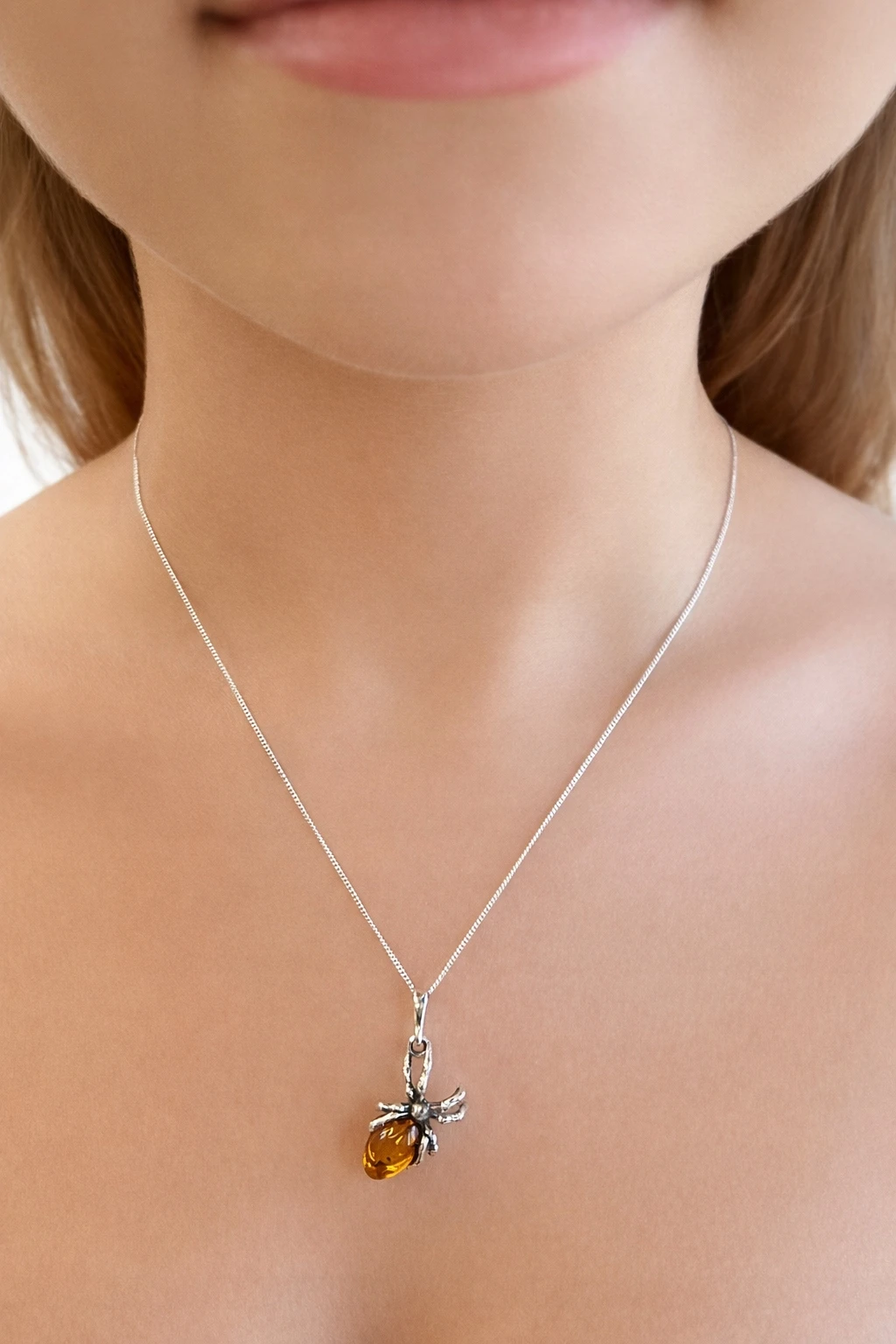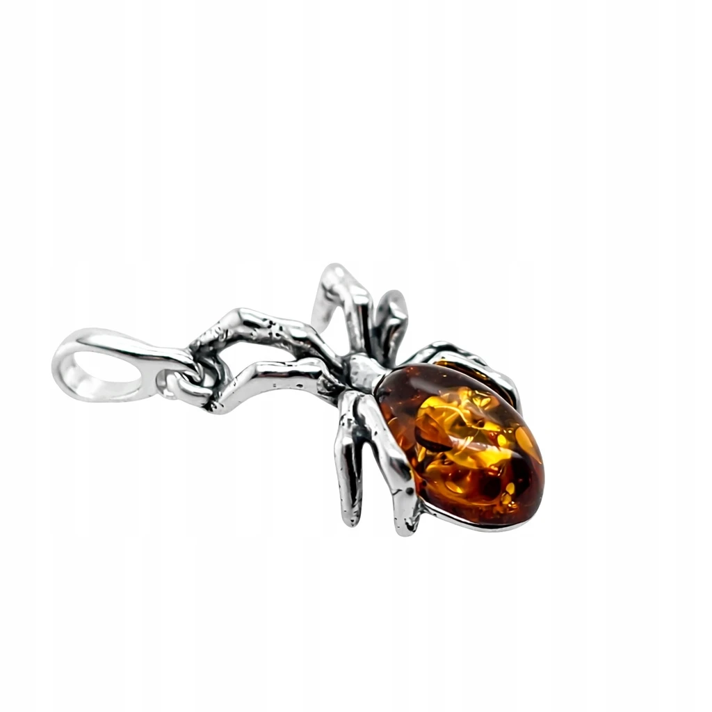 ✔️ Elegancka zawieszka wykonana ze srebra, ozdobiona naturalnym bursztynem o koniakowej barwie.