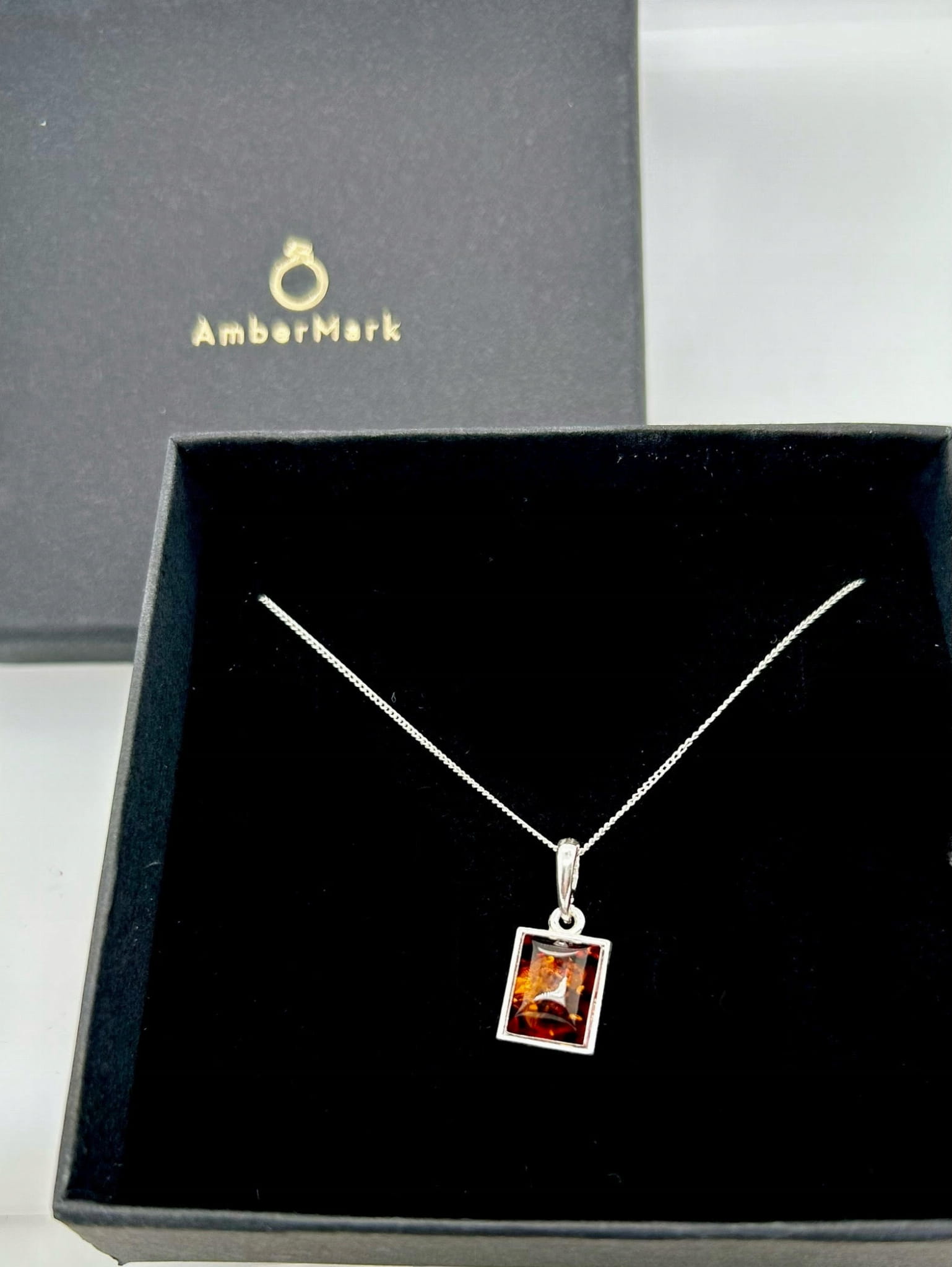 Zawieszka srebrna z bursztynem PROSTOKĄT
