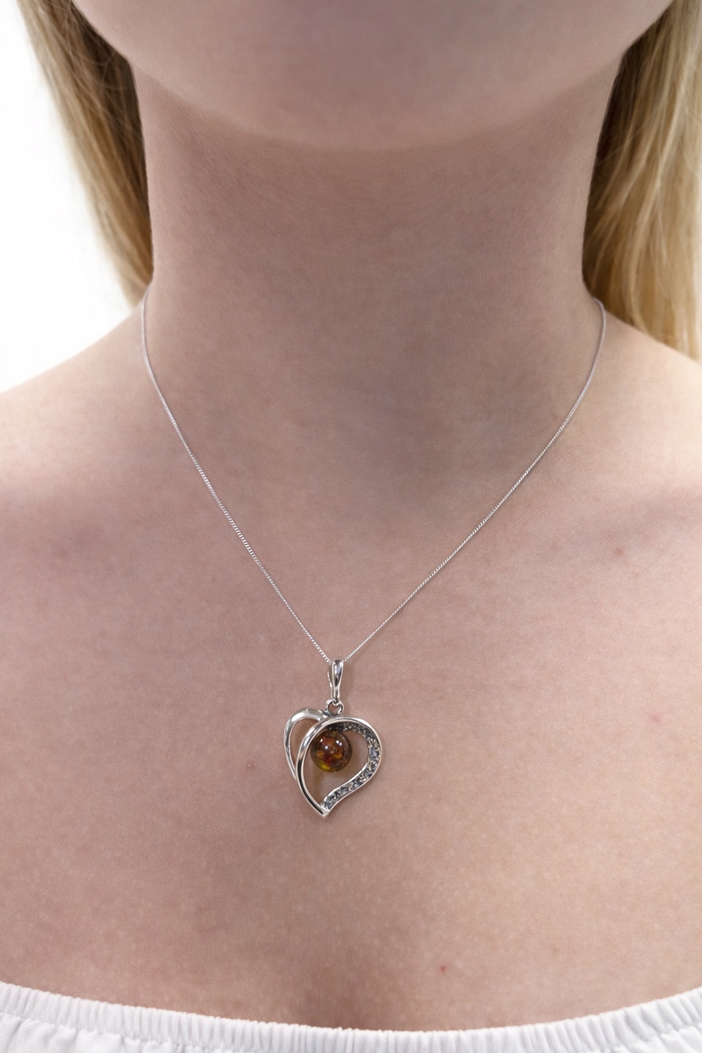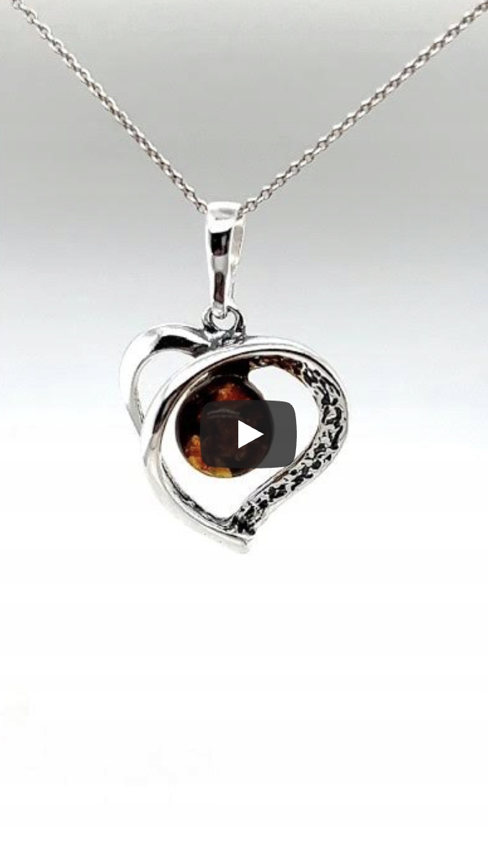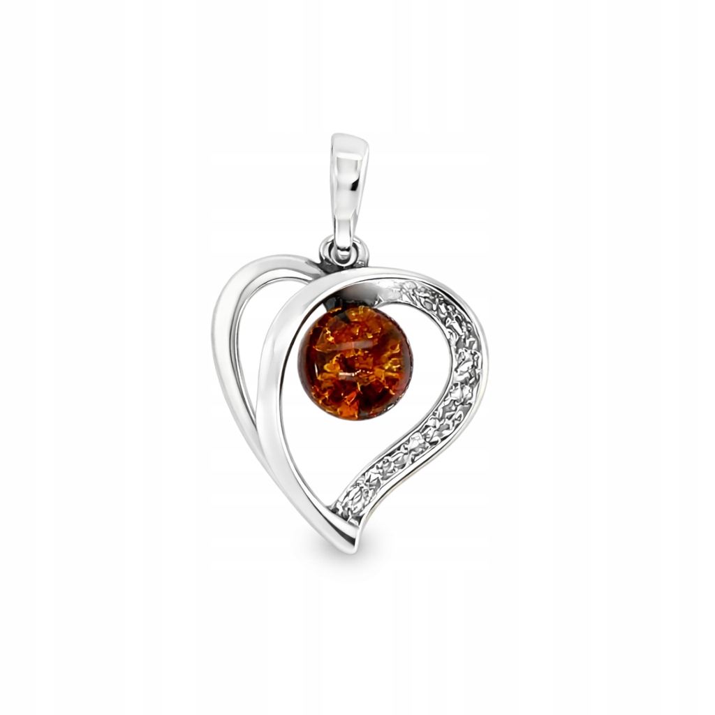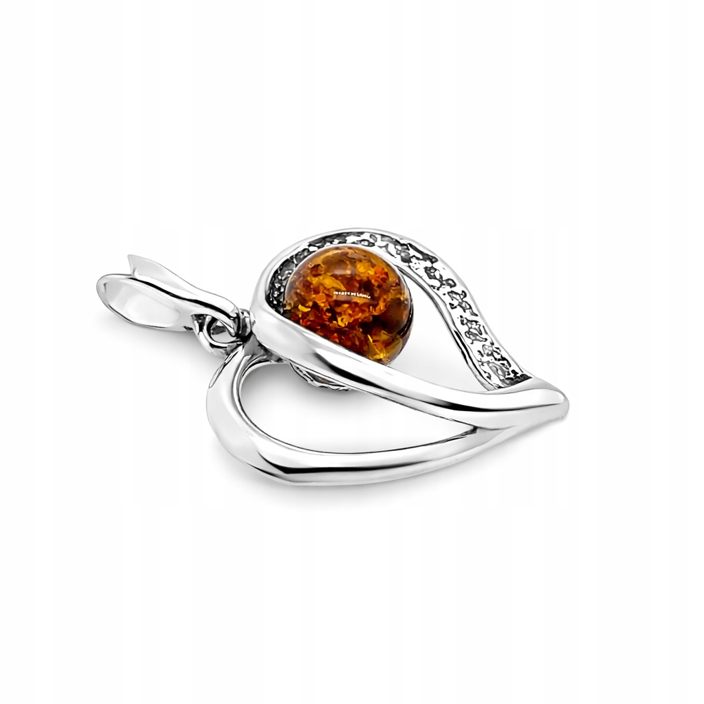 Srebrna zawieszka z bursztynem – motyw serca