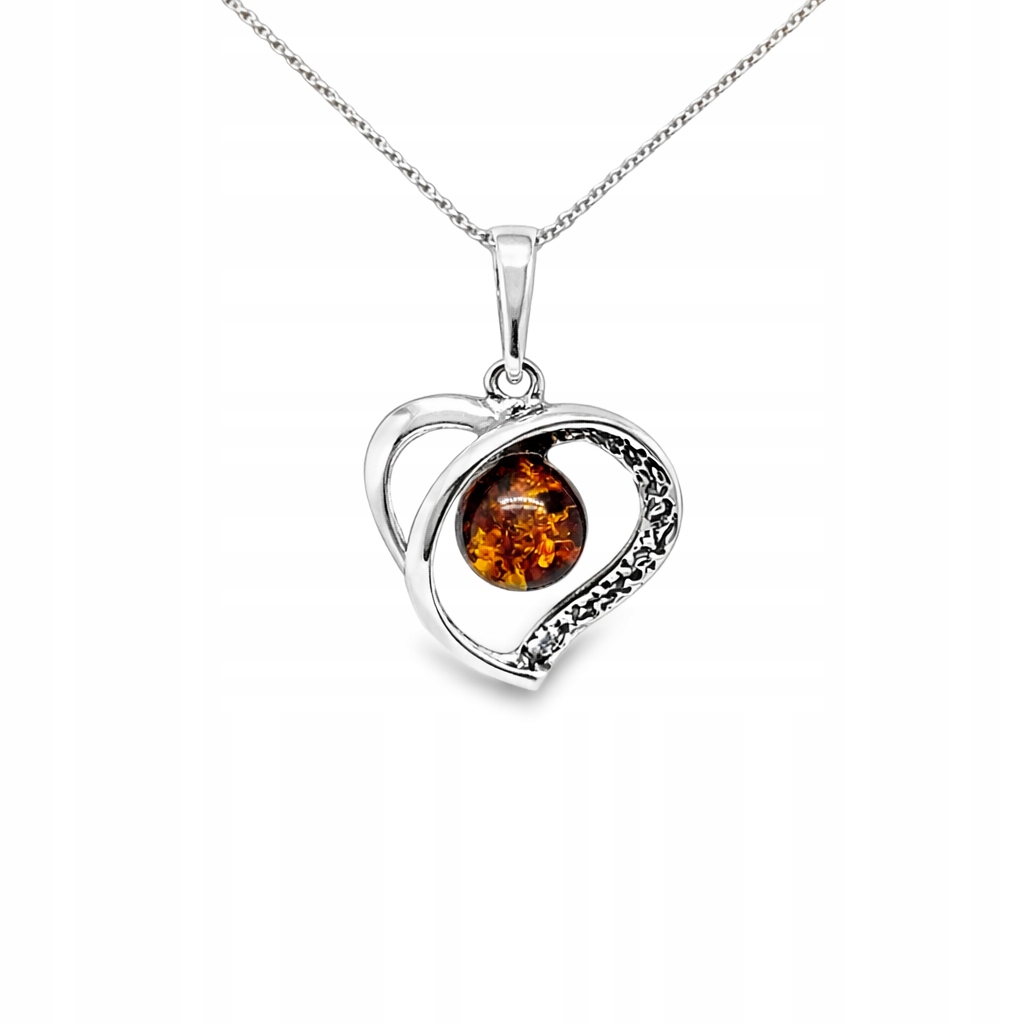 ✔️ Starannie wykonana srebrna oprawa w kształcie serca subtelnie otacza bursztyn, nadając zawieszce wyjątkowy charakter oraz delikatną symbolikę miłości i bliskości.