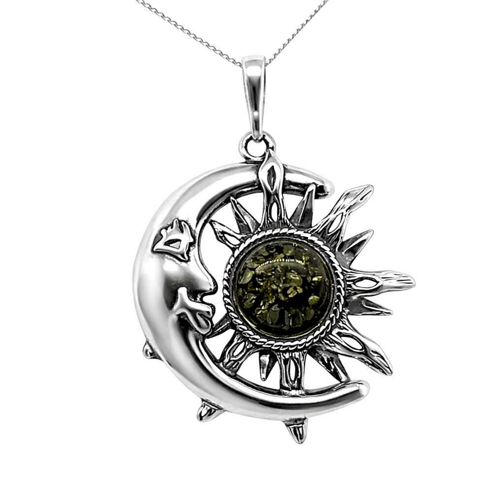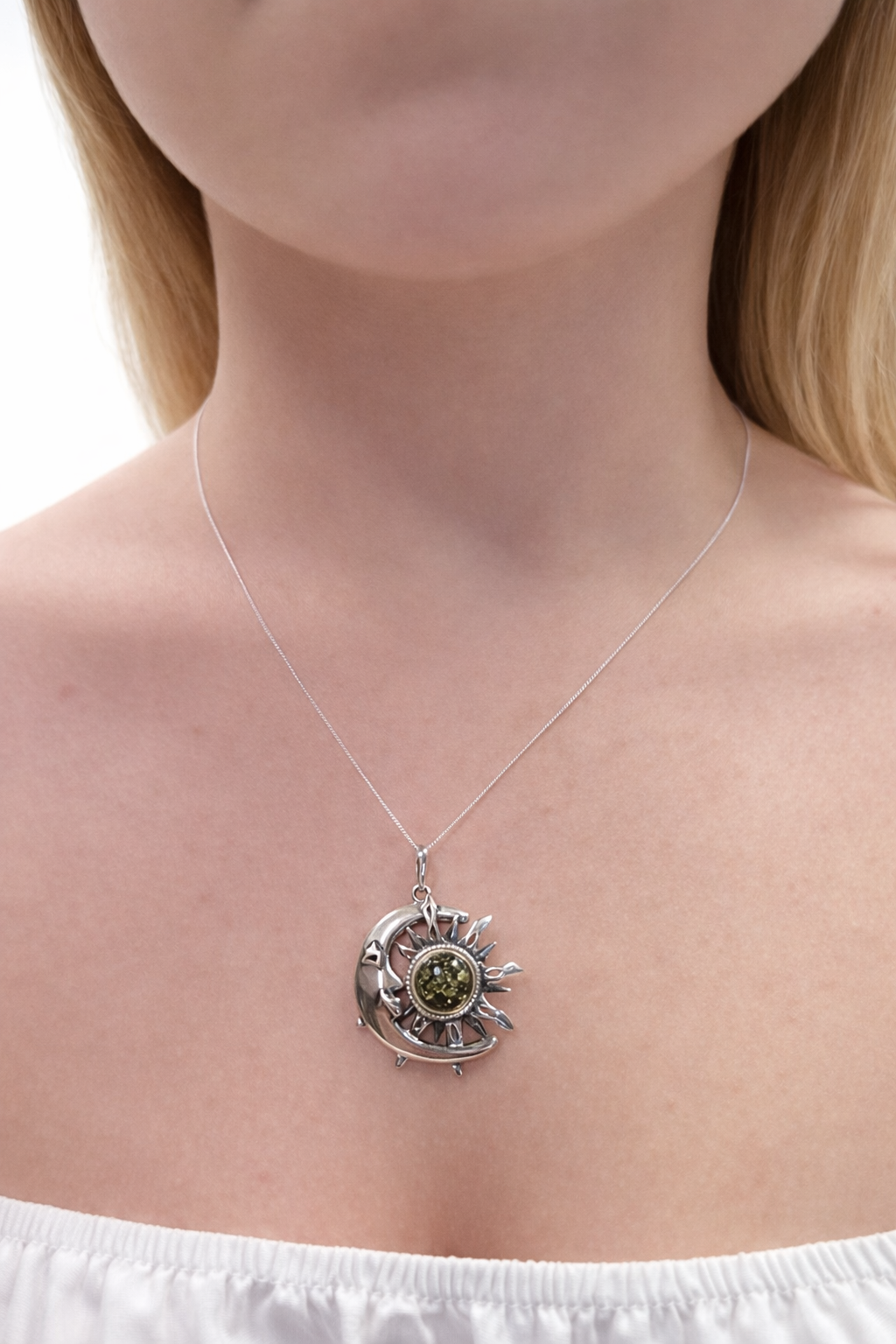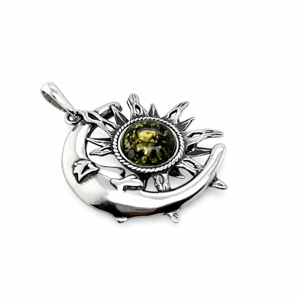 Zawieszka srebrna z bursztynem SŁOŃCE W KSIĘŻYCU