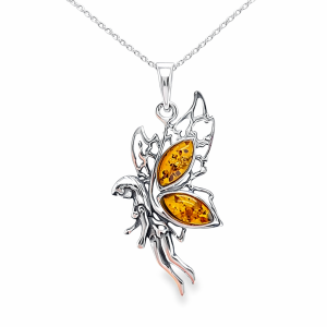 Zawieszka srebrna z bursztynem WRÓŻKA