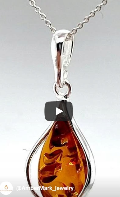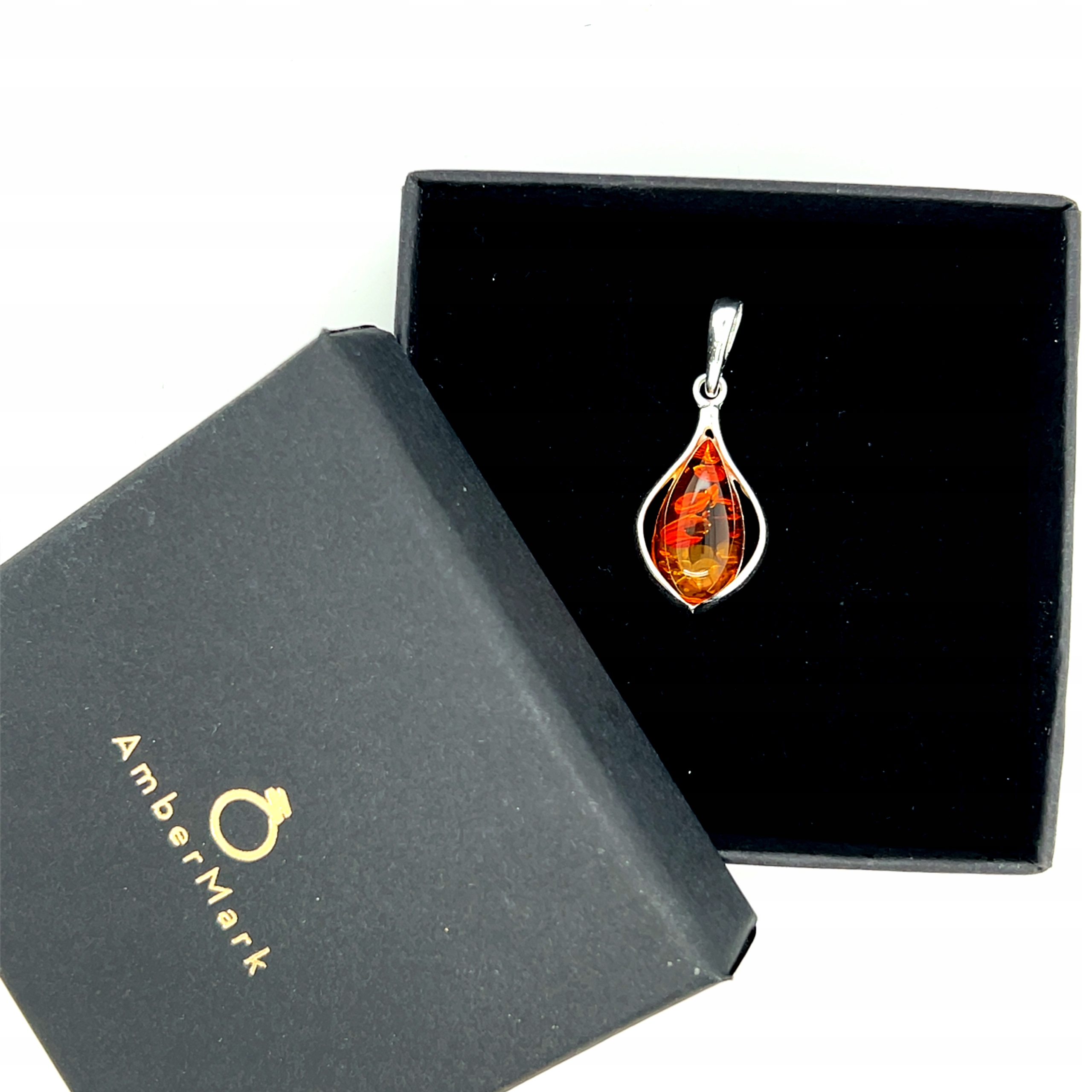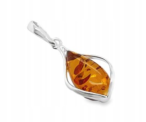 ✔️ Elegancka zawieszka wykonana ze srebra, ozdobiona naturalnym bursztynem o koniakowej barwie.