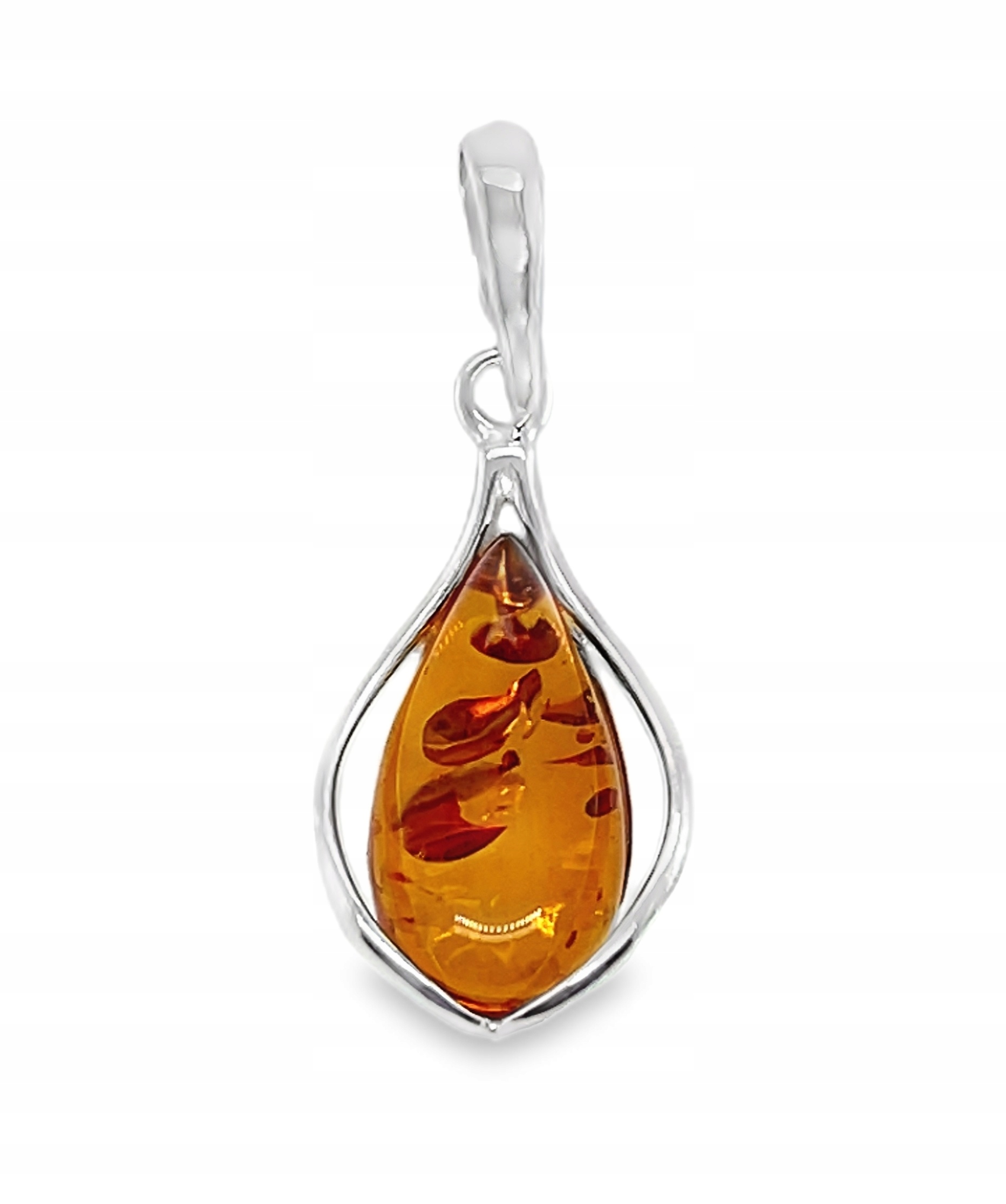 ✔️ Opływowa, srebrna oprawa delikatnie podkreśla kształt bursztynu i nadaje całości elegancki, ponadczasowy charakter.