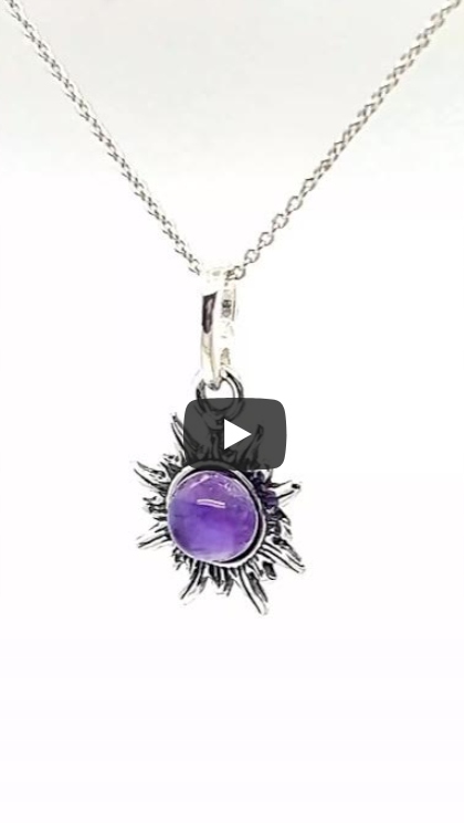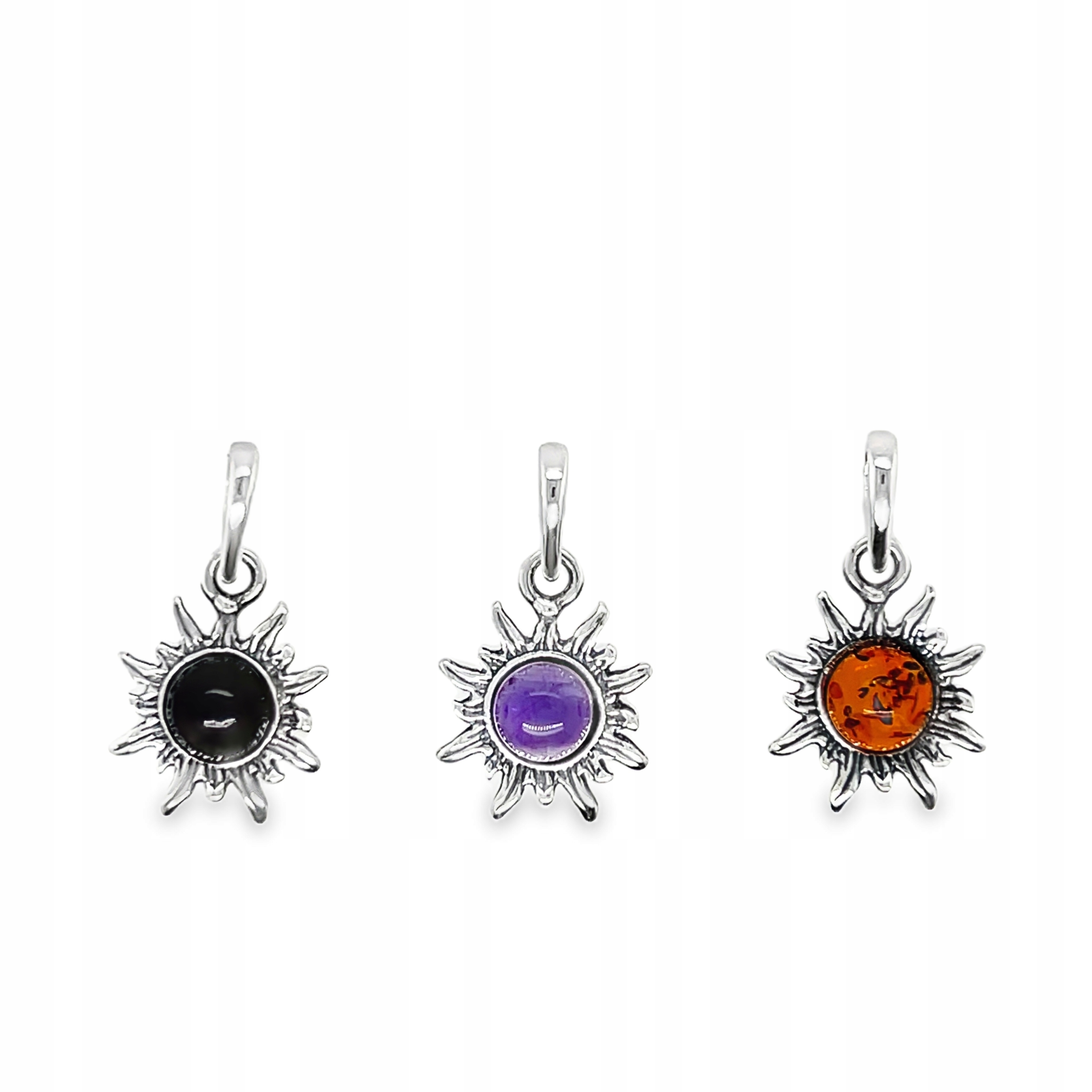 Zawieszka srebrna z naturalnym ametystem fiolet słońce kamień srebro FILM