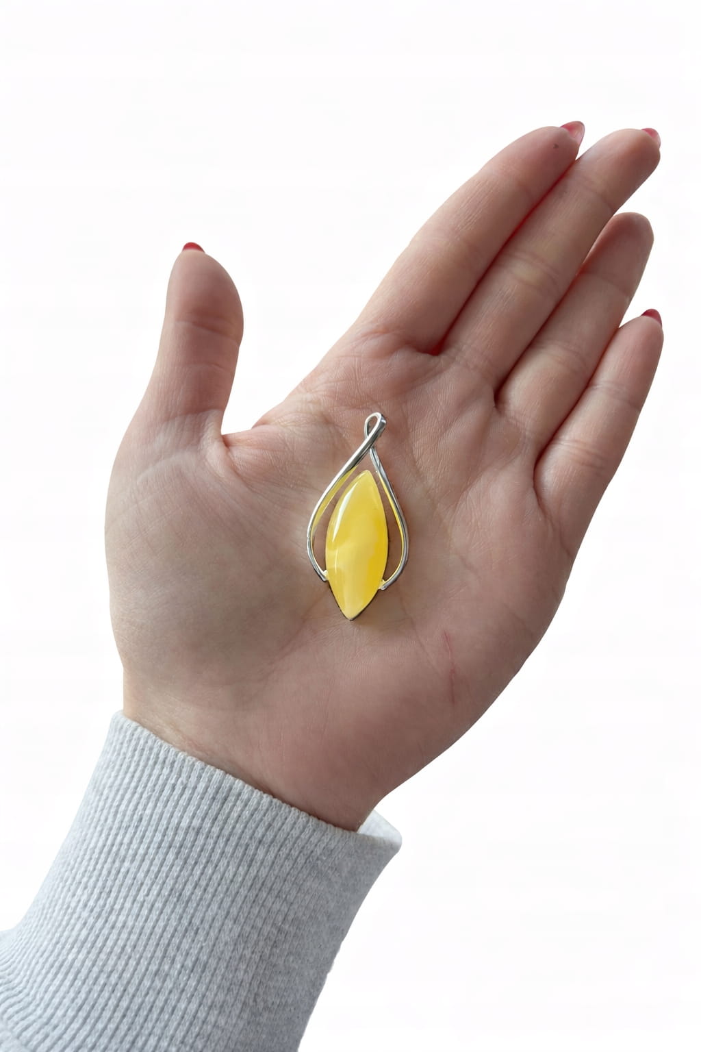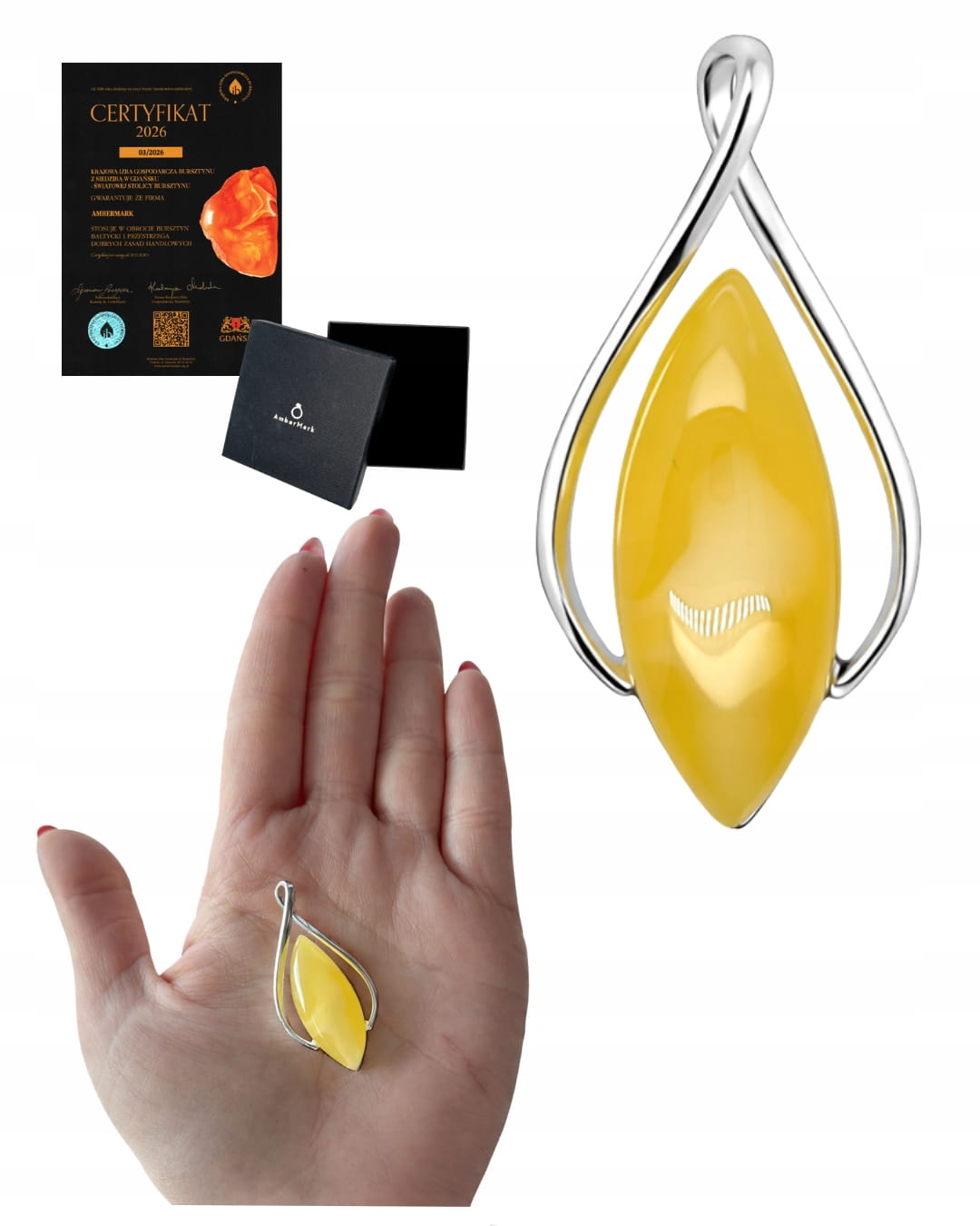 ✔️ Opływowa, srebrna oprawa delikatnie podkreśla kształt bursztynu i nadaje całości elegancki, ponadczasowy charakter.