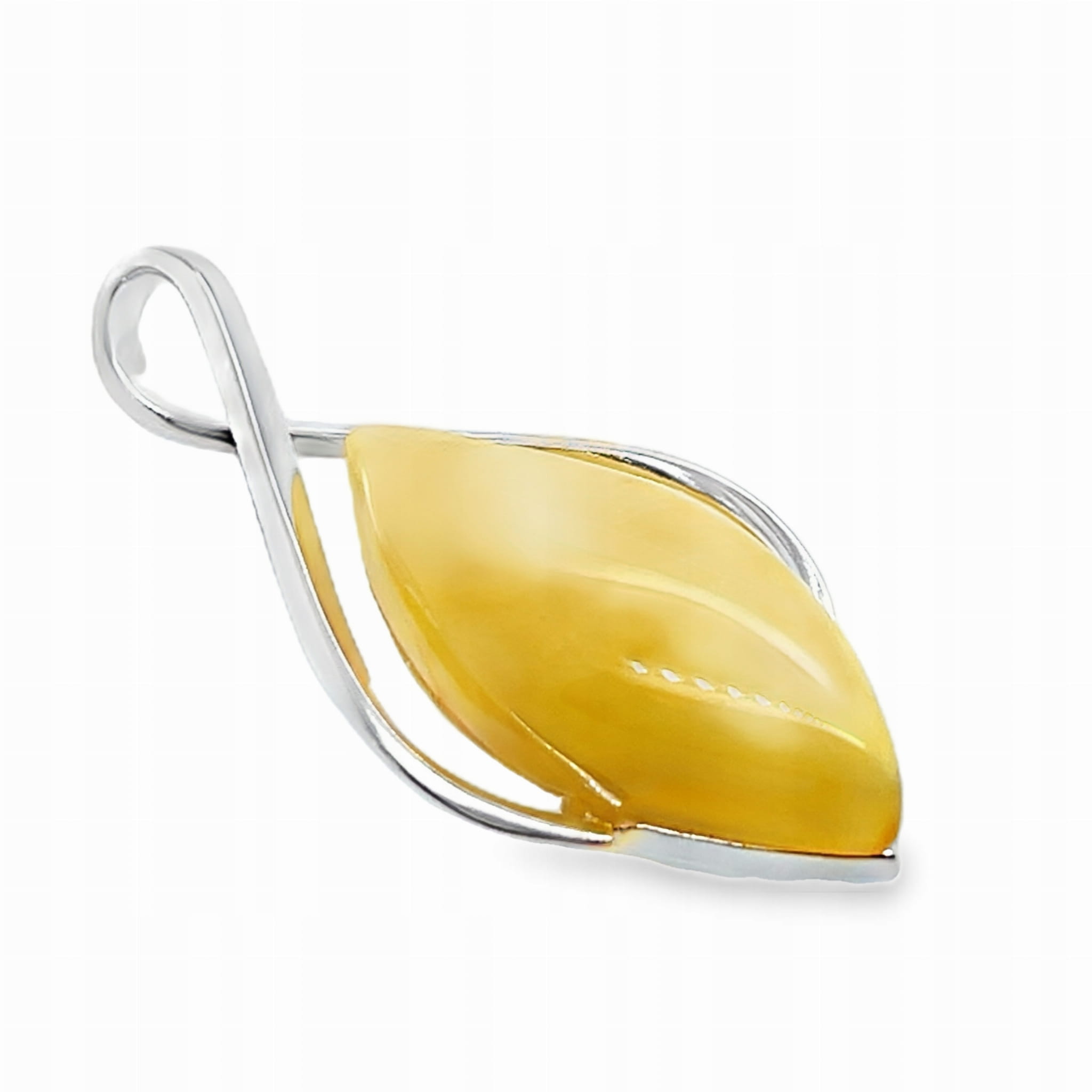 ✔️ Elegancka zawieszka wykonana ze srebra, ozdobiona naturalnym bursztynem o ciepłej, miodowo-mlecznej barwie.